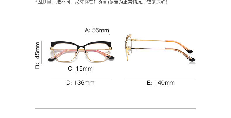 - Size: lens width - 55 mm, bridge distance - 15 mm, temple - 140 mm