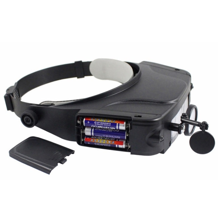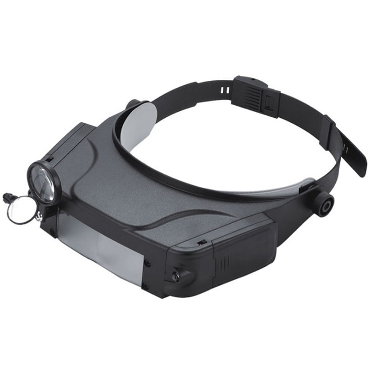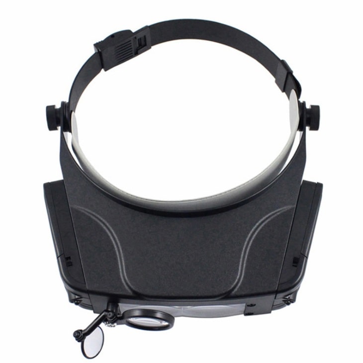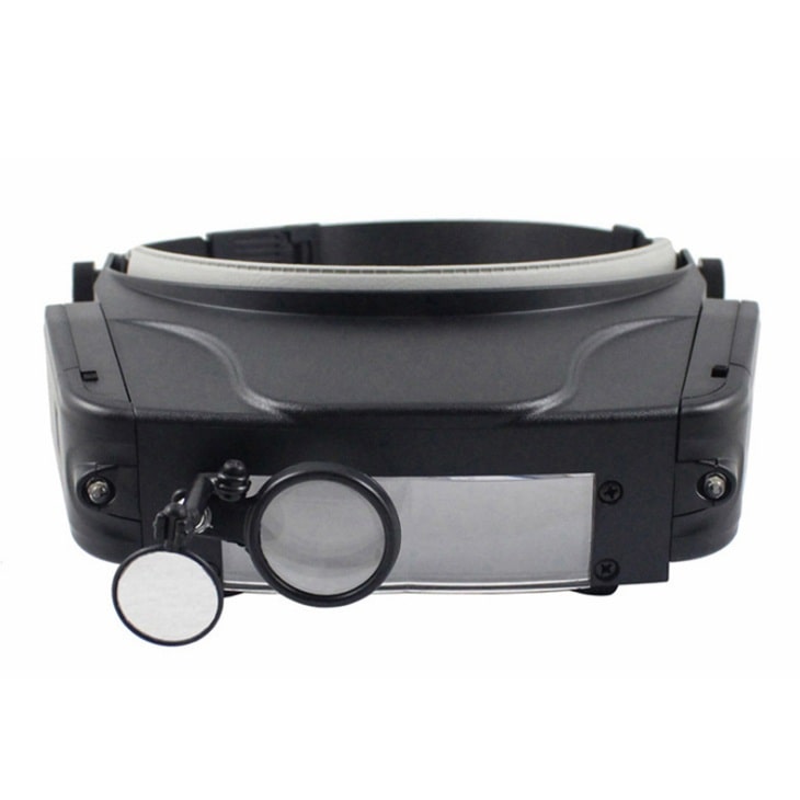 The binocular magnifier is suitable for various works with small details. The special design allows you to attach the magnifier to your head and free your hands. The magnifier has a LED backlight.