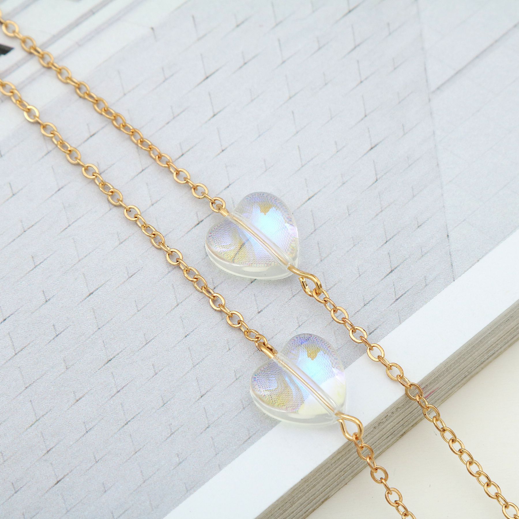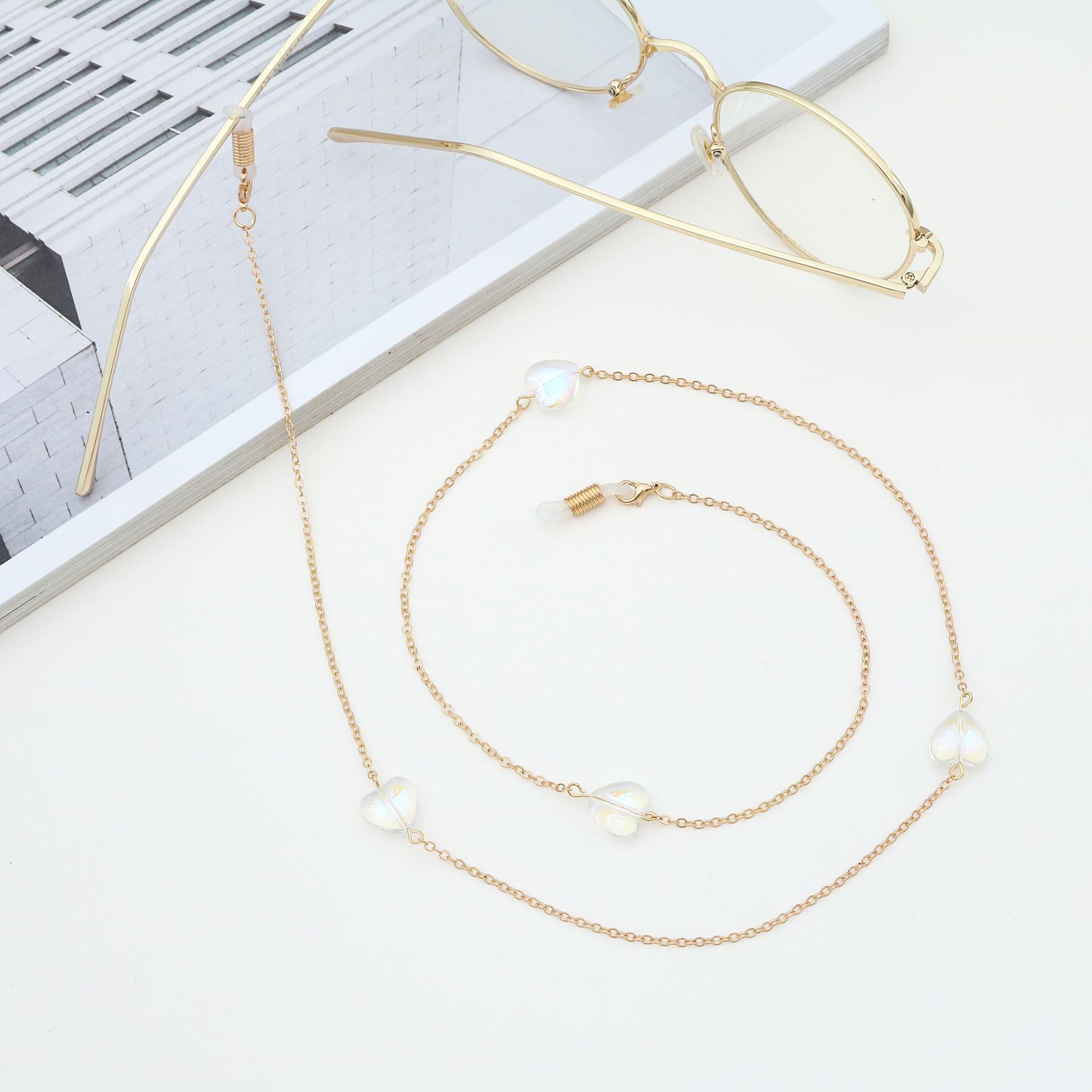 Металлическая нескользящая цепочка, с хрустальным сердцем, для очков и масок GA075