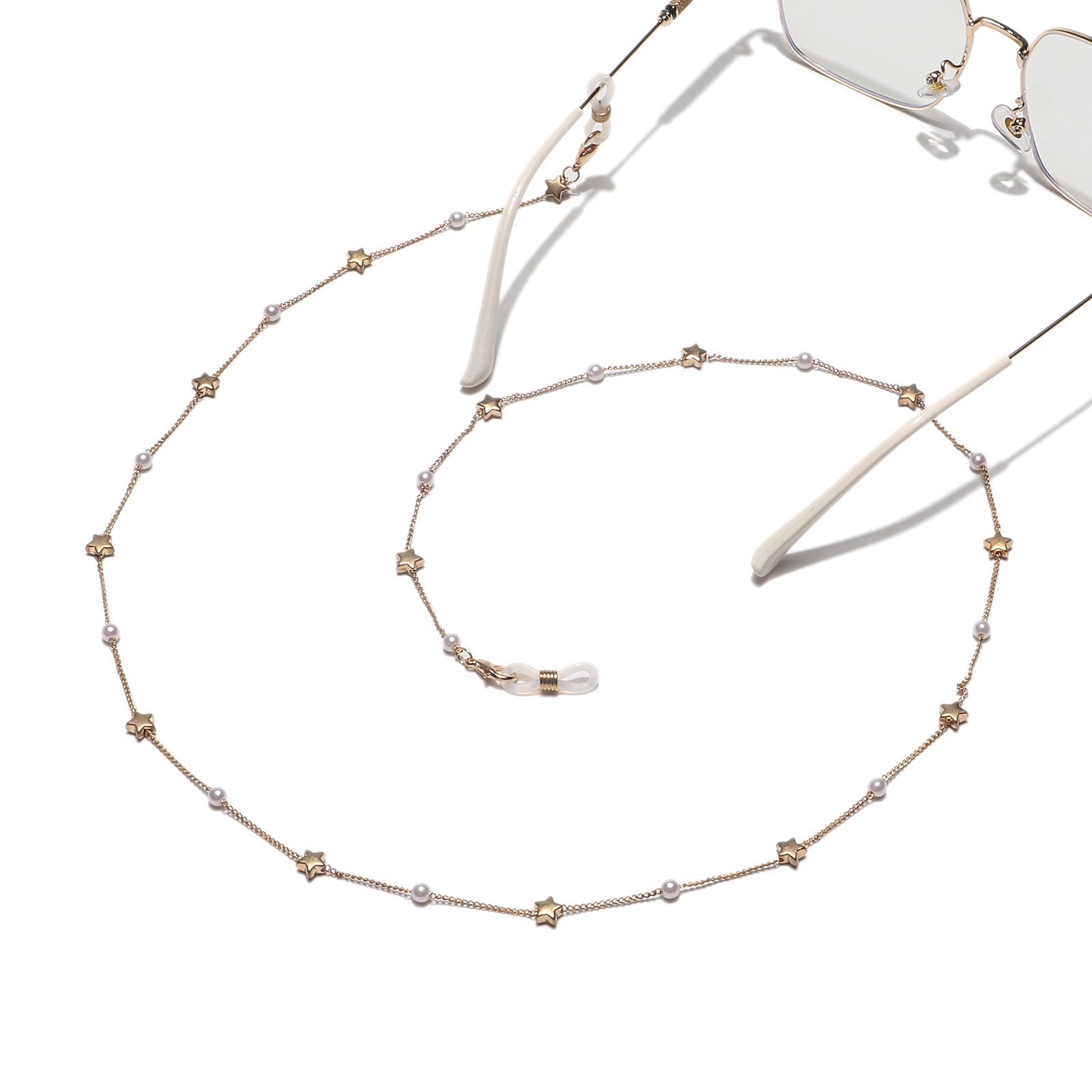 Металлическая цепочка с искусственным жемчугом и звездами для очков и масок GL1129
