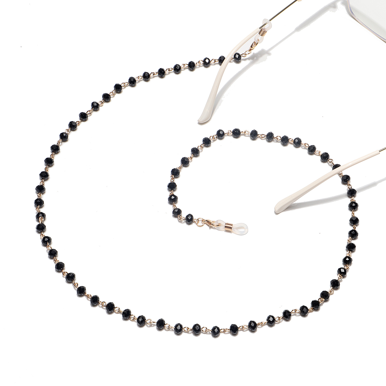 Металлическая цепочка для очков и масок с чёрными бусинами GL1143
