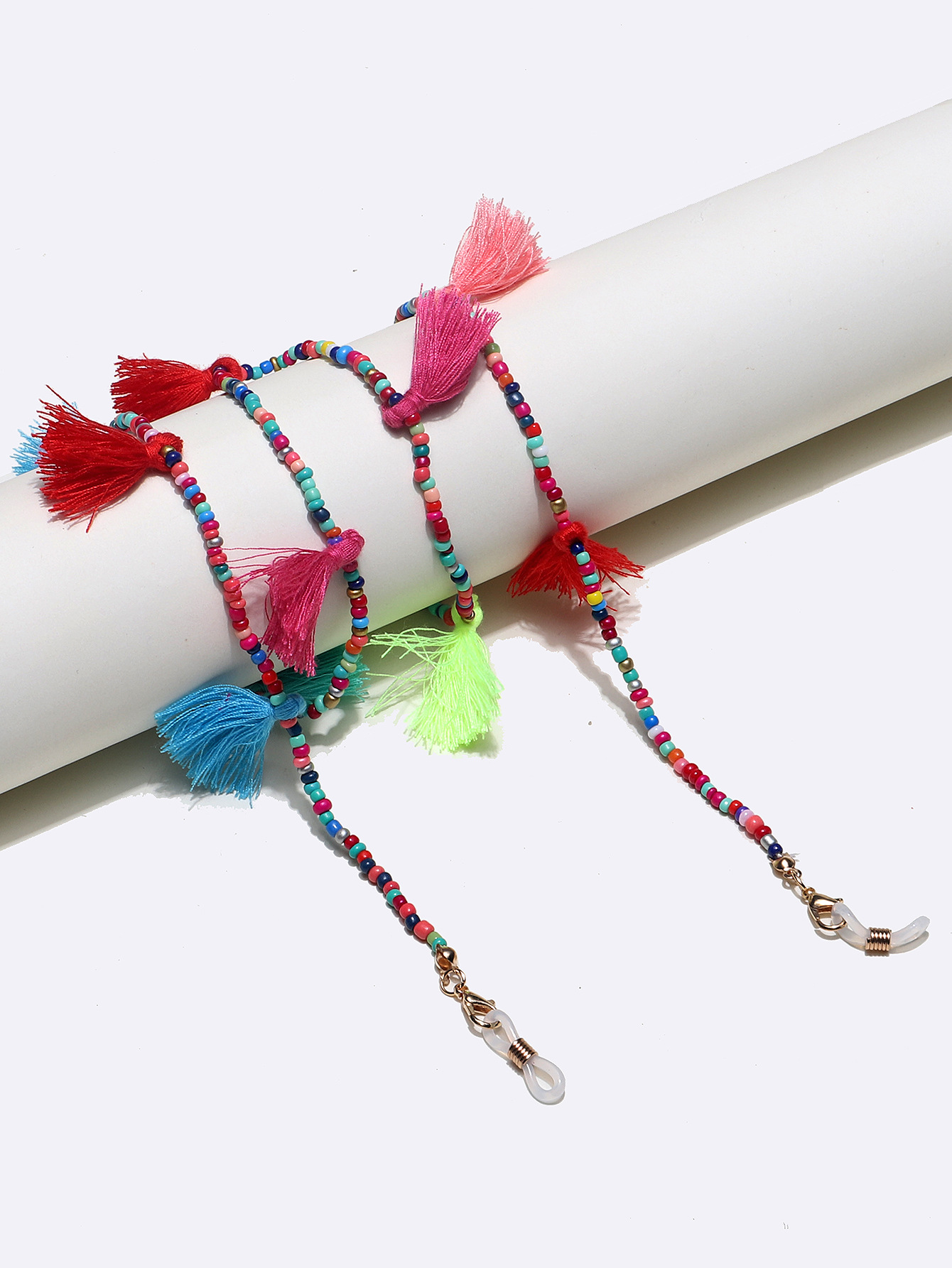 Модная разноцветная цепочка для очков из рисовых бусин с кисточками GL1321