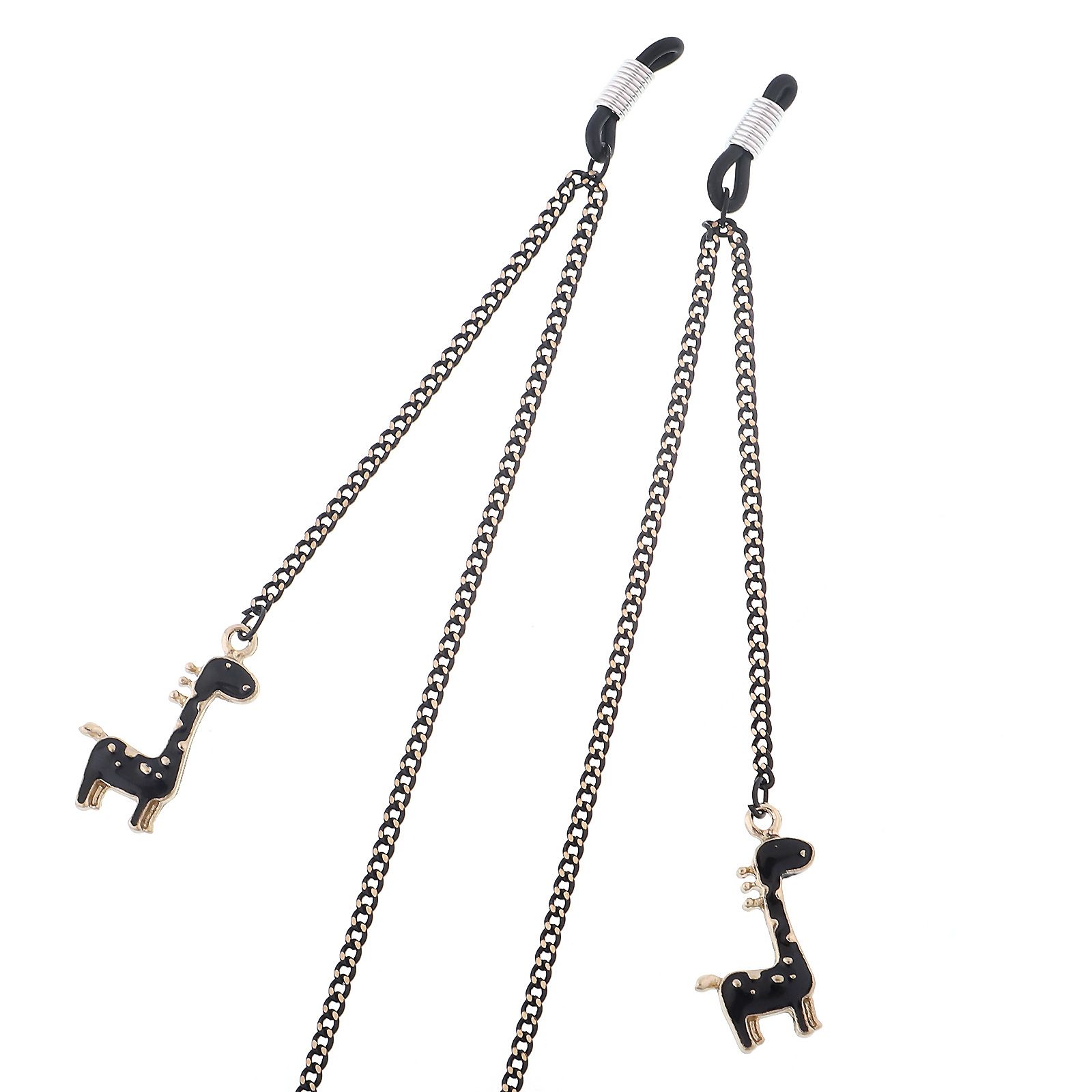 Металлическая нескользящая цепочка черного цвета, с подвеской в виде черного жирафа, для очков и масок GL362