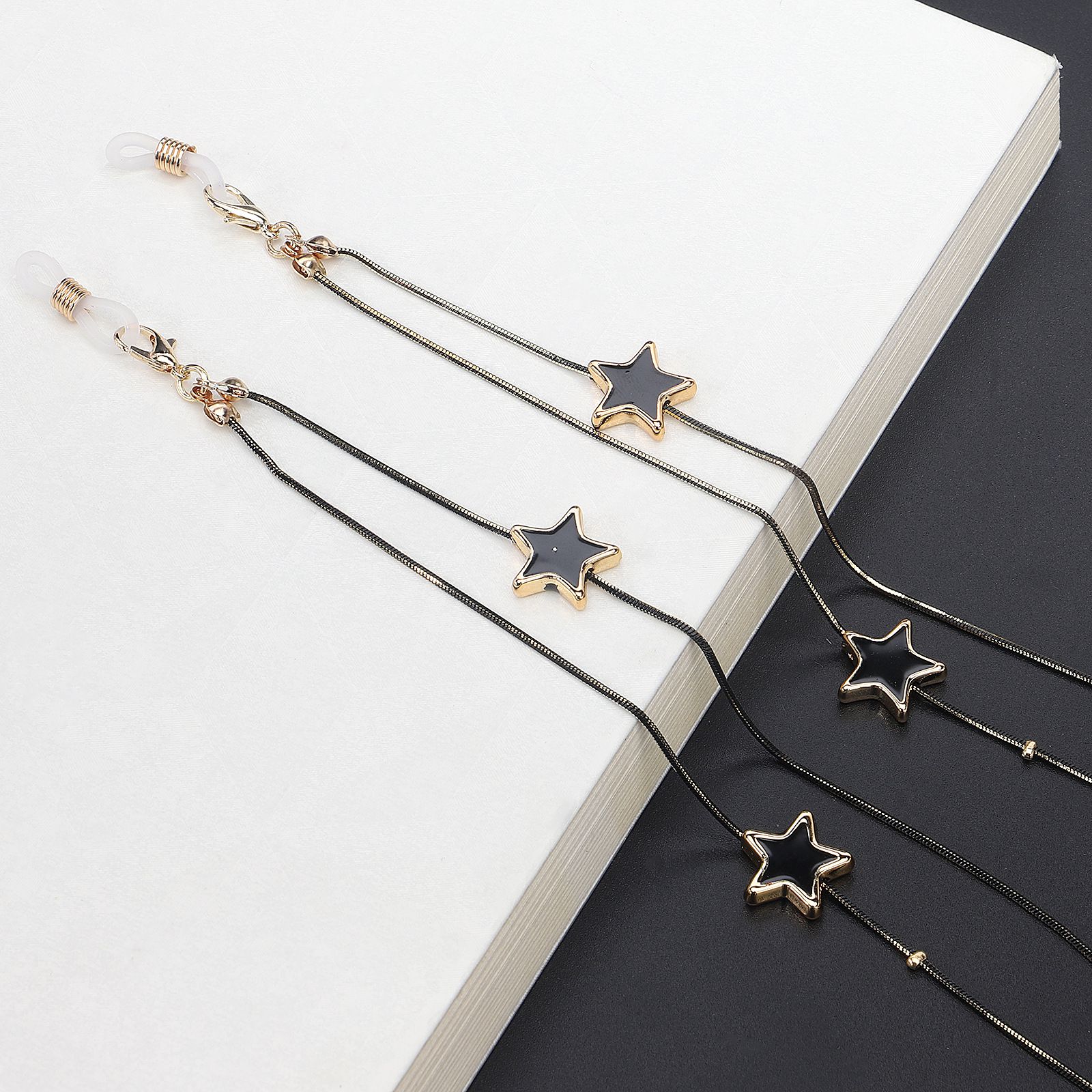 Металлическая нескользящая цепочка, с черной кристальной звездой, для очков и масок GL442