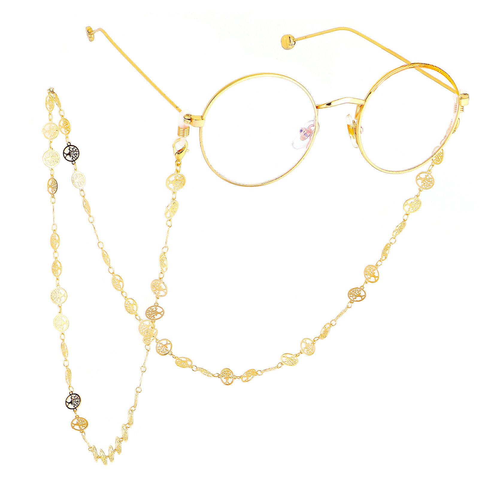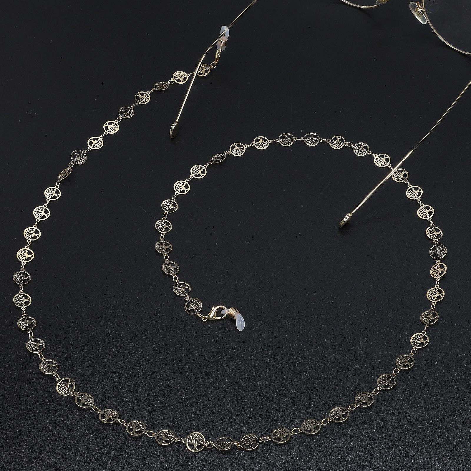 Металлическая нескользящая цепочка золотого цвета, из меди в форме дерева жизни, для очков и масок GL523