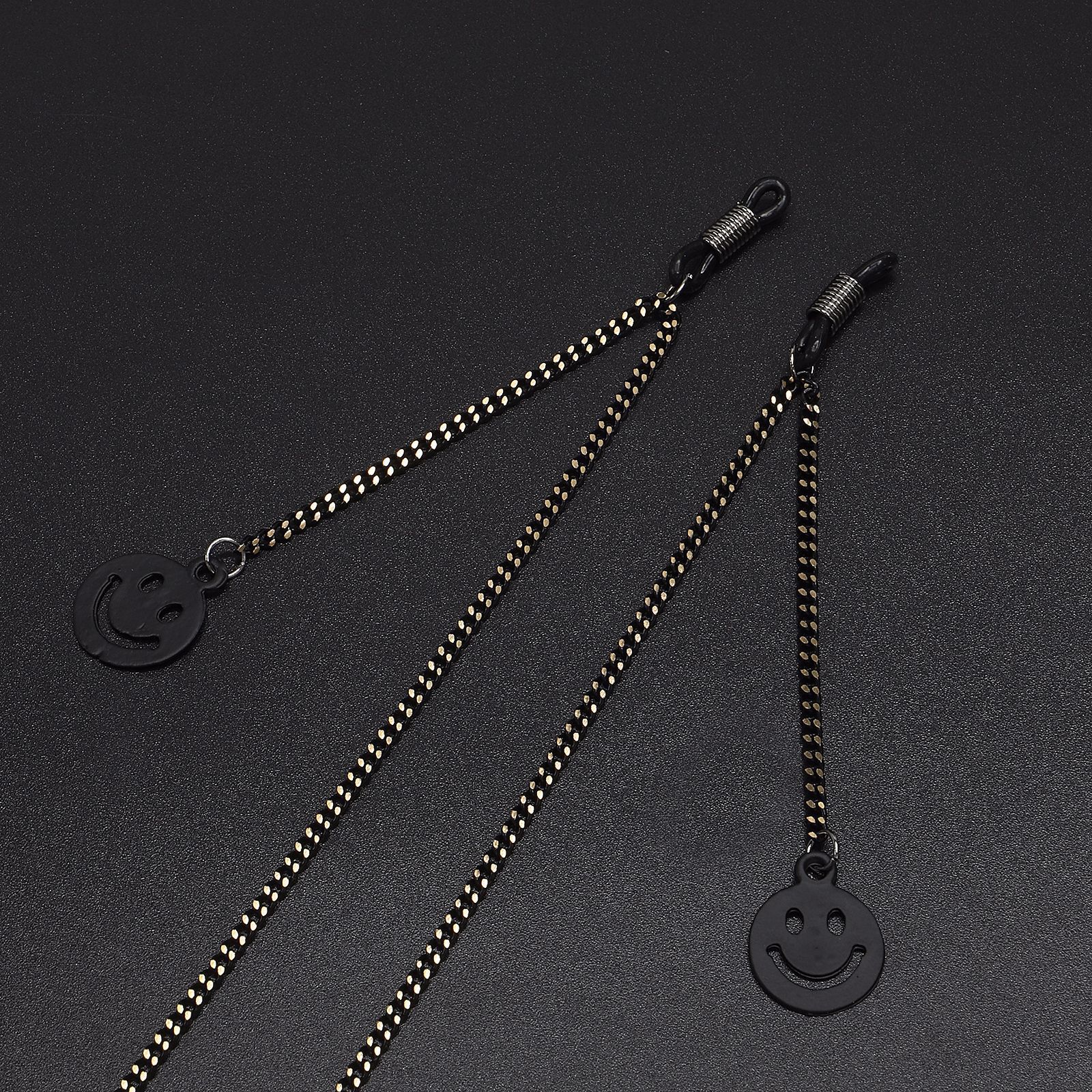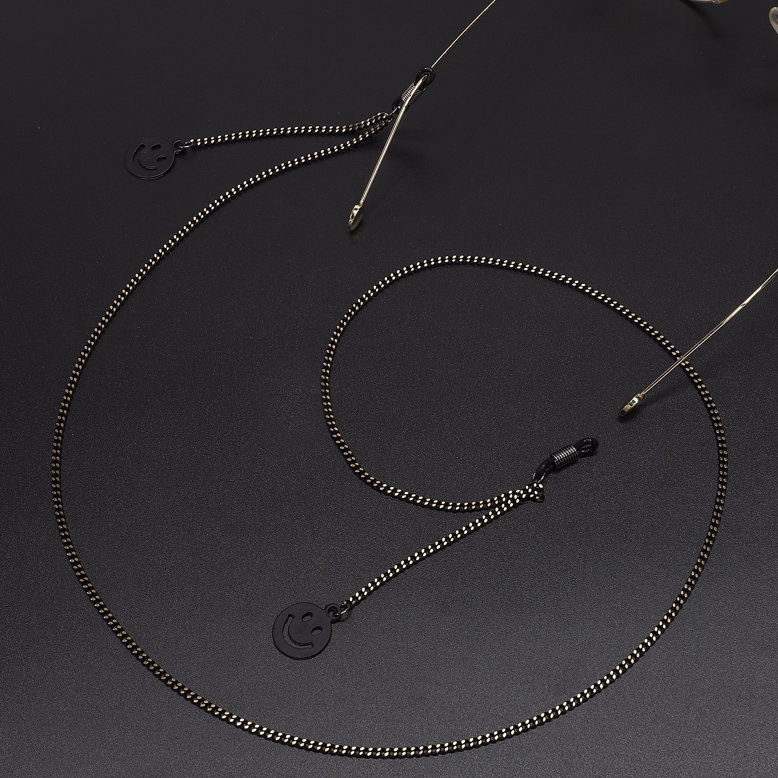 Металлическая нескользящая цепочка черного цвета, с подвеской черный смайлик, для очков и масок GL542
