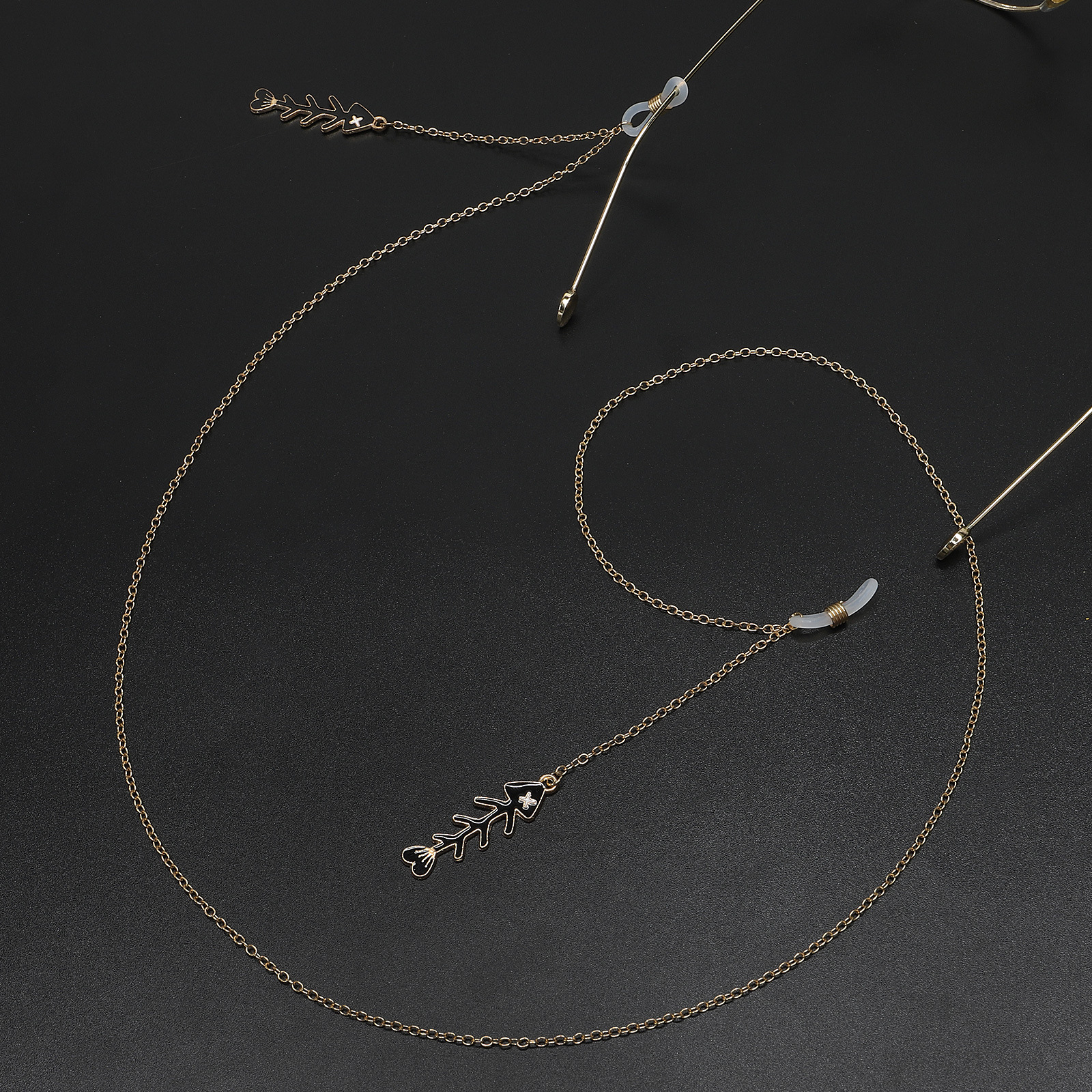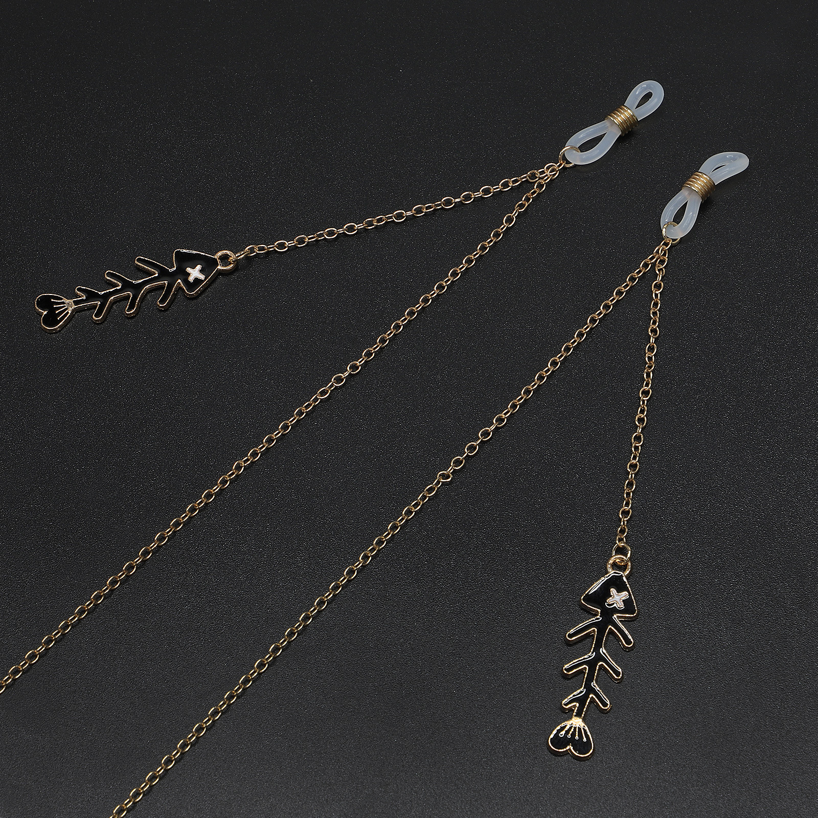 Металлическая нескользящая цепочка золотого цвета, с подвеской в виде скелета рыбы, для очков и масок GL695