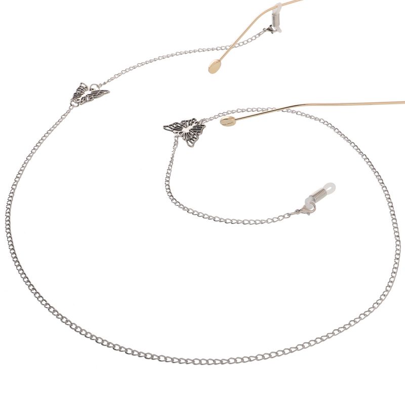Silver-colored metal non-slip chain, with butterflies, for glasses and masks GL046