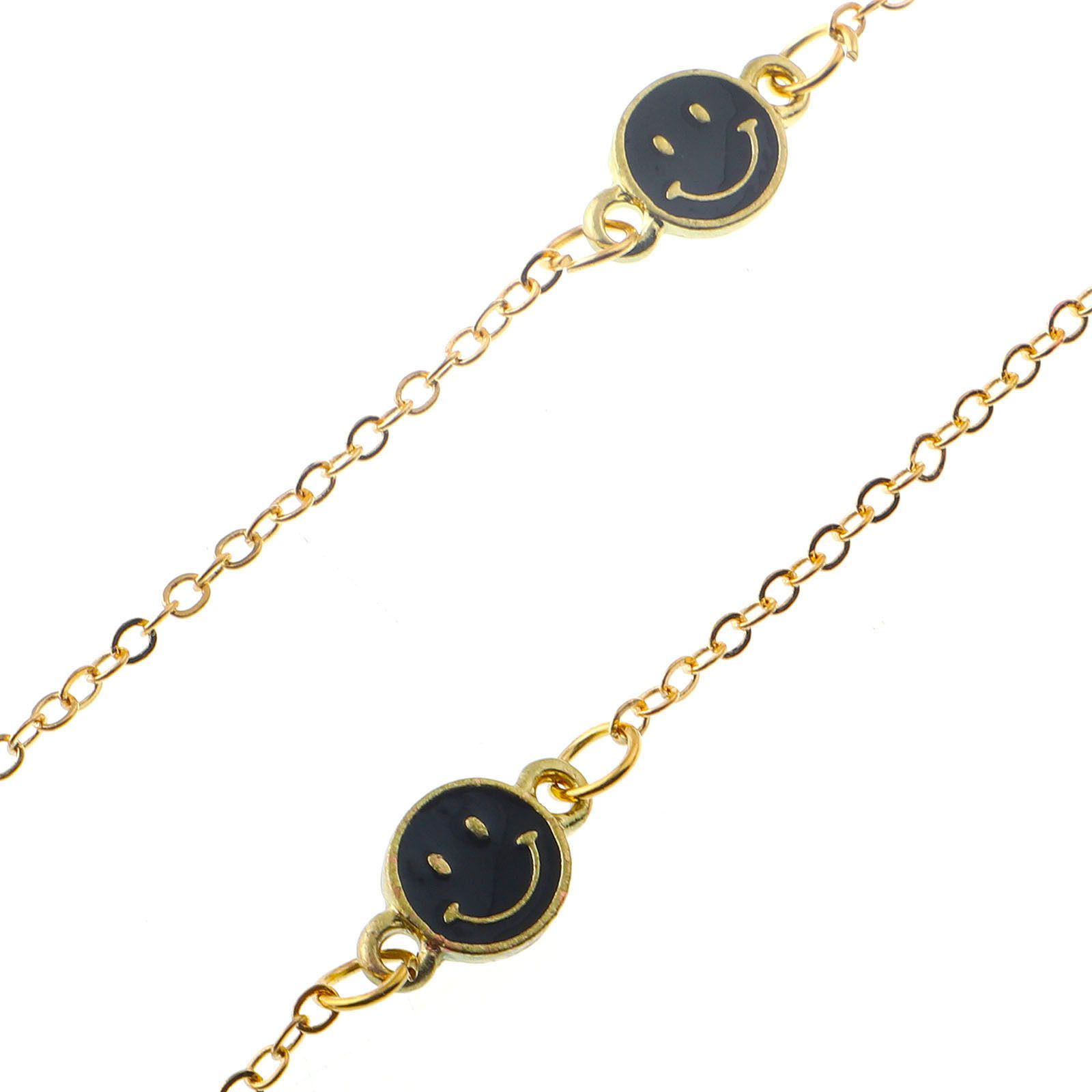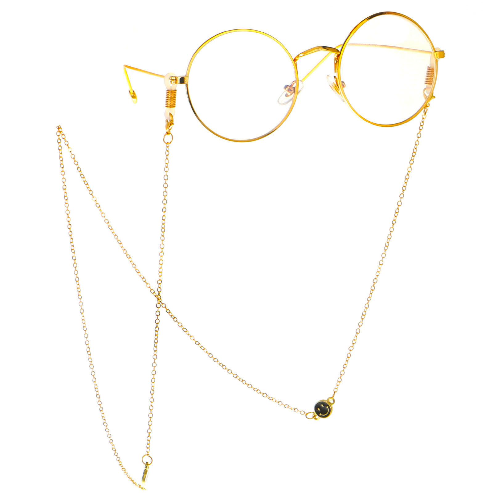 Gold-colored metal non-slip chain, with black smiley, for glasses and masks GL088