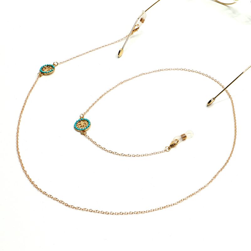 Gold-colored metal non-slip chain, with the tree of life, for glasses and masks GL1036