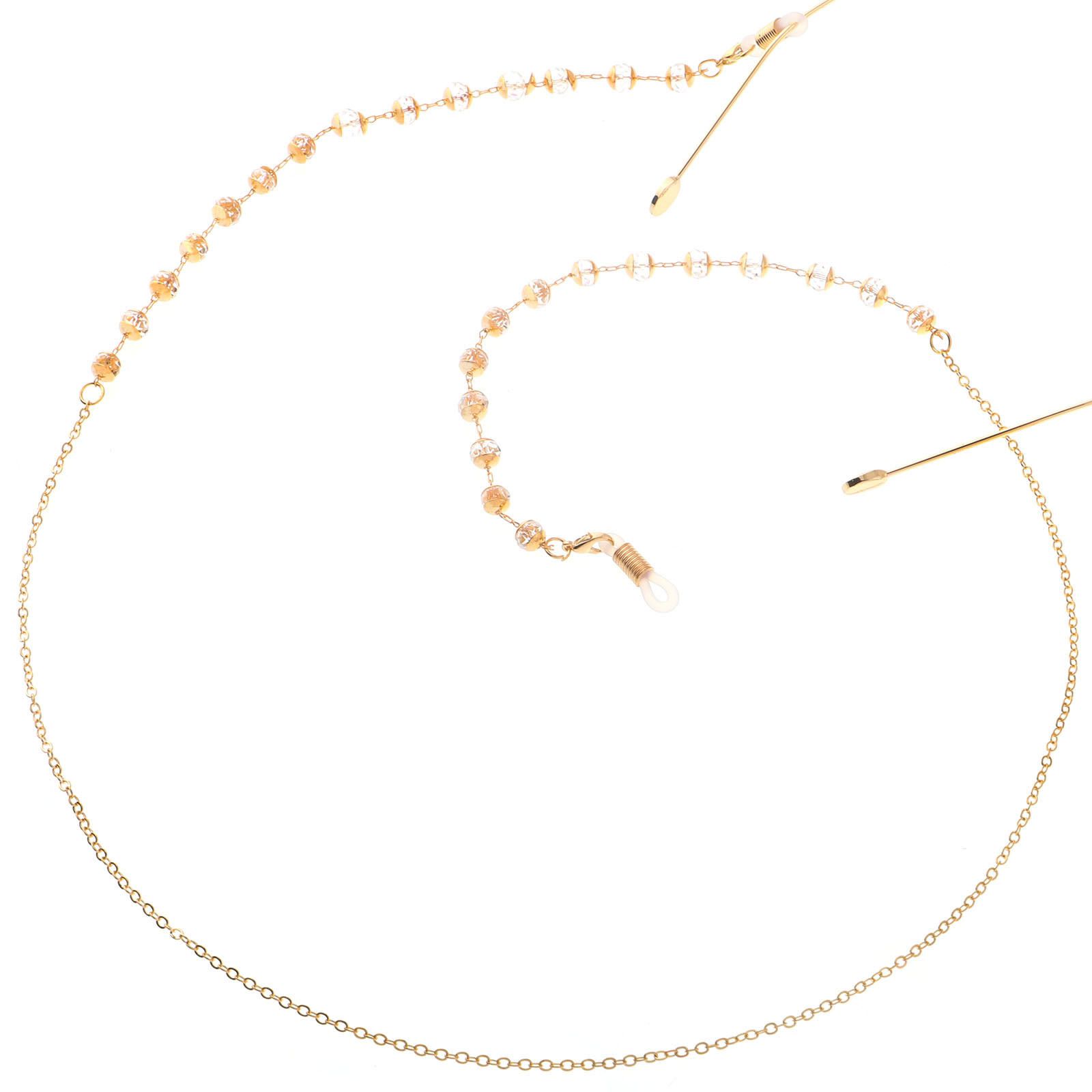 Metal non-slip gold chain, with gold crystal, for glasses and masks GL109