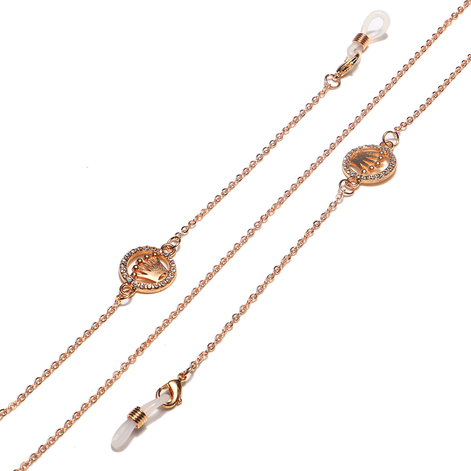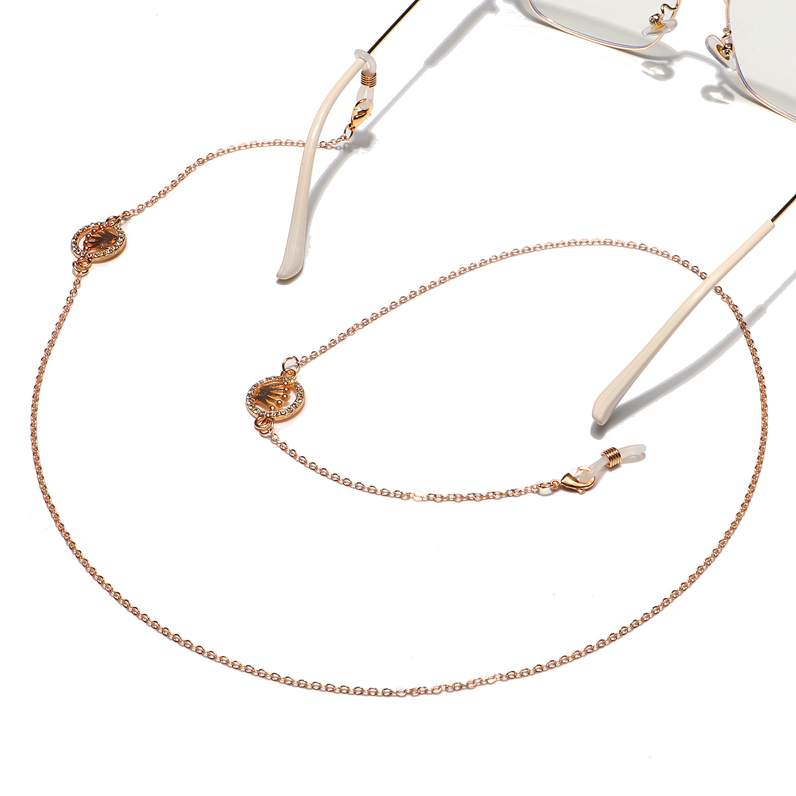 Golden rhinestone crown glasses chain GL1212