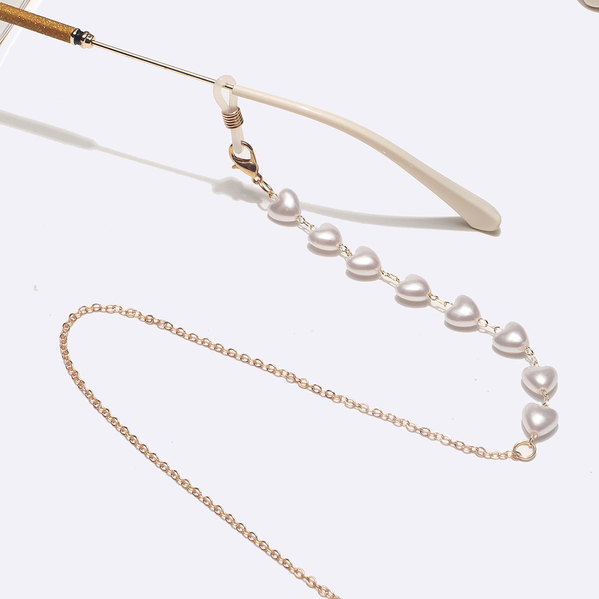Gold-colored metal non-slip chain, with pearl heart, for glasses and masks GL1342-1