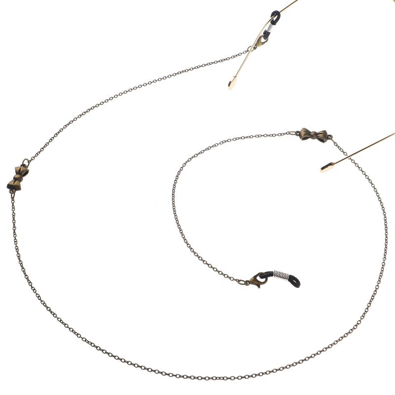 Bronze-colored metal non-slip chain, with a bow, for glasses and masks GL136