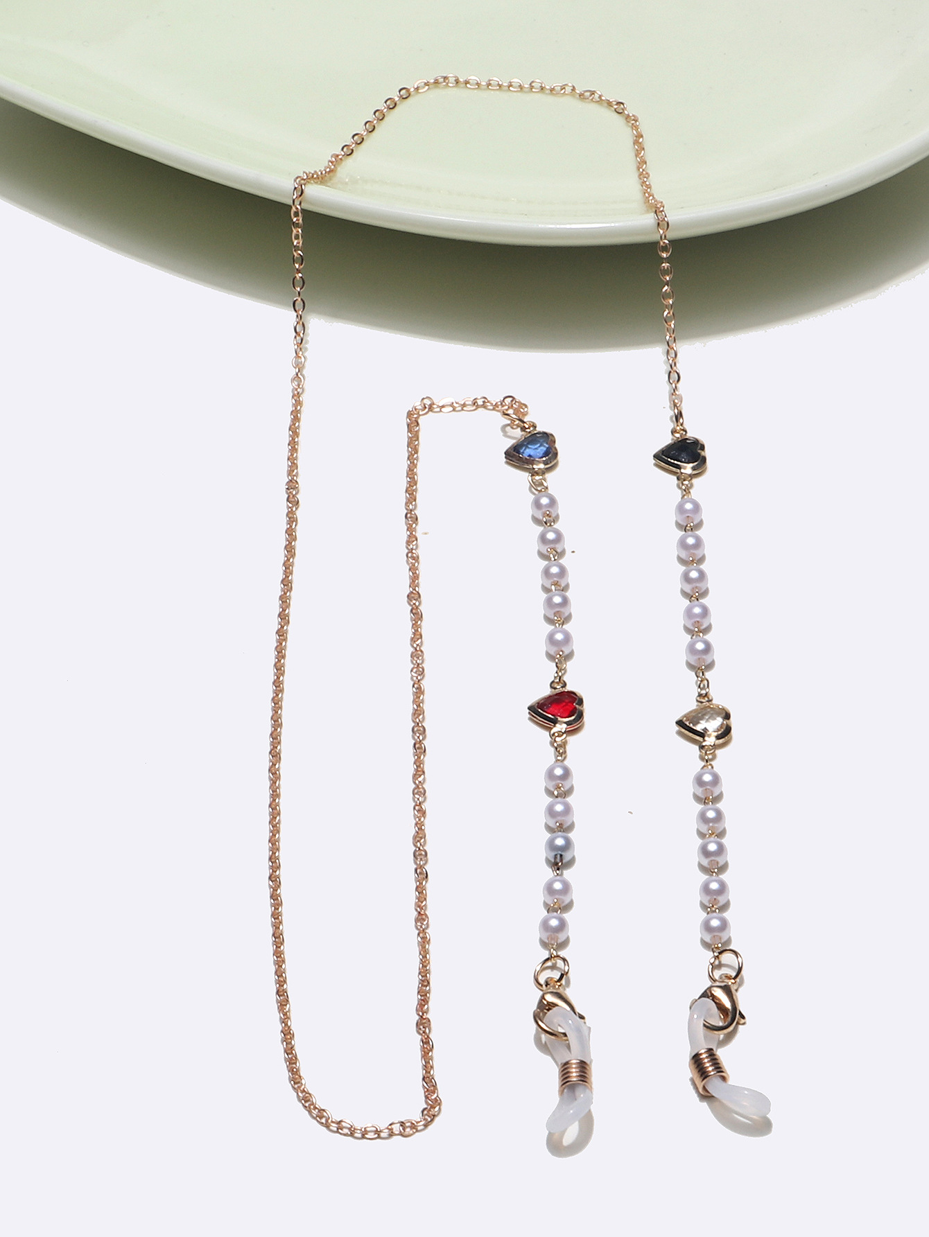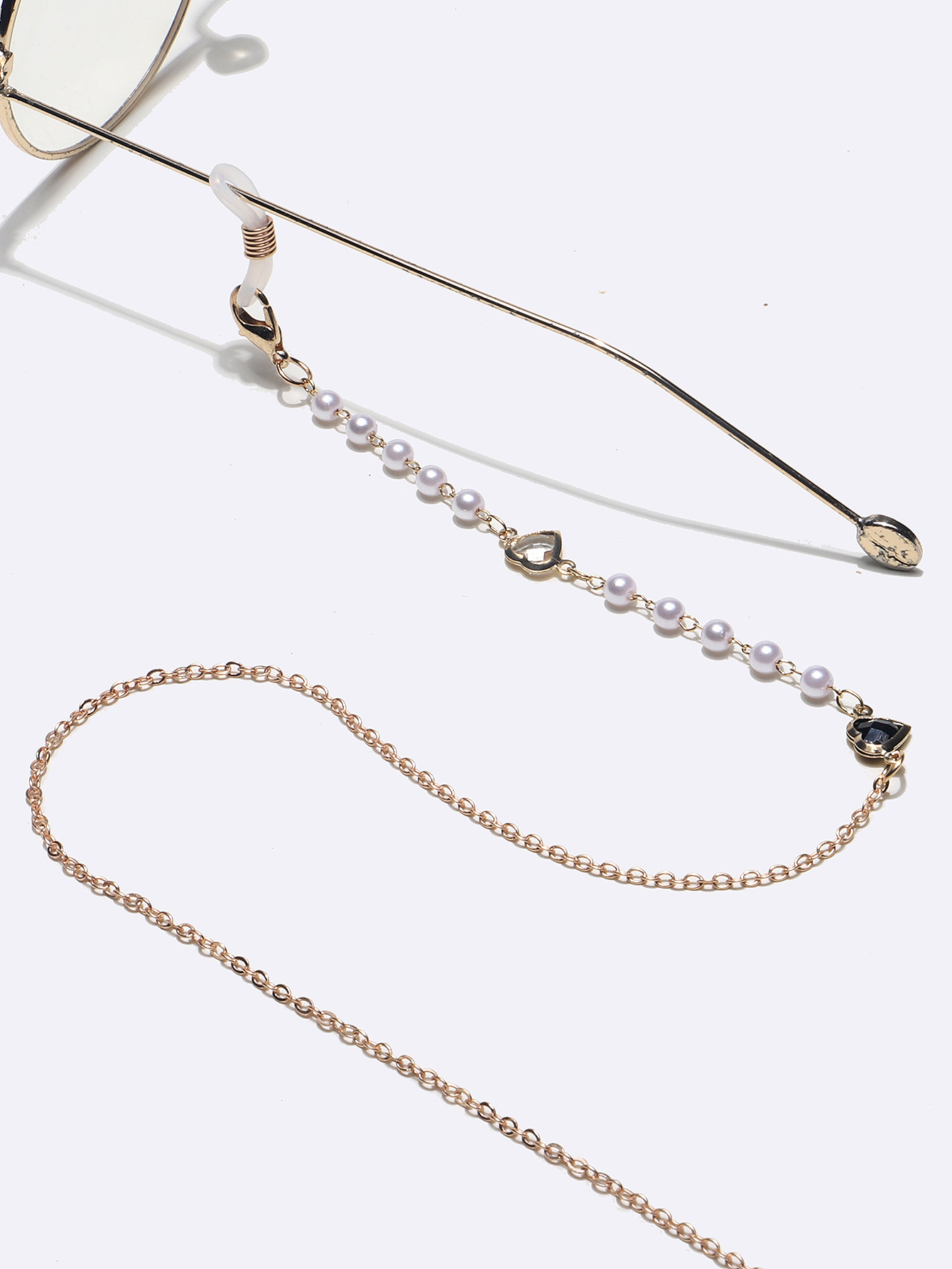 Fashion glasses chain with hearts and pearls GL1364