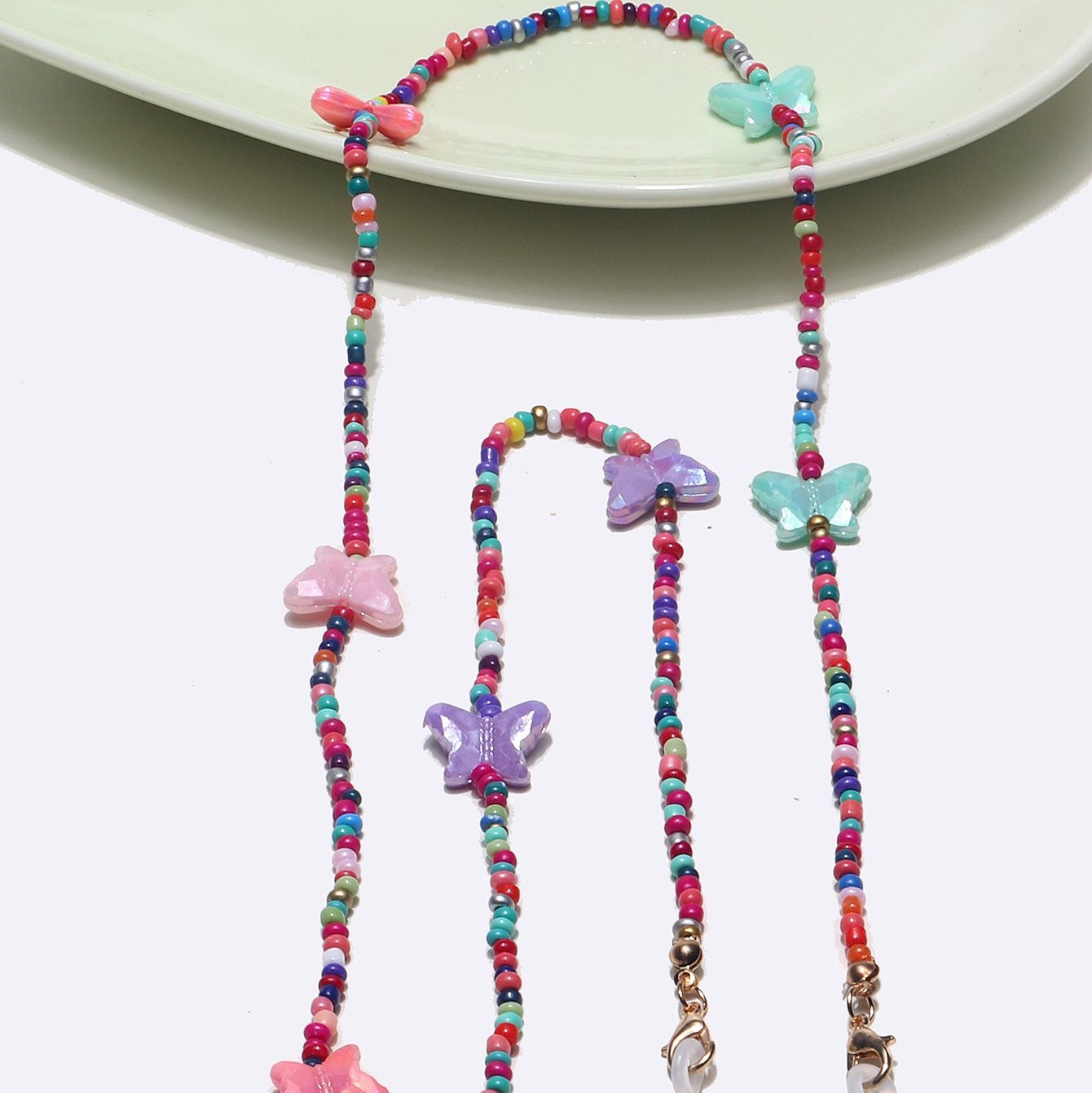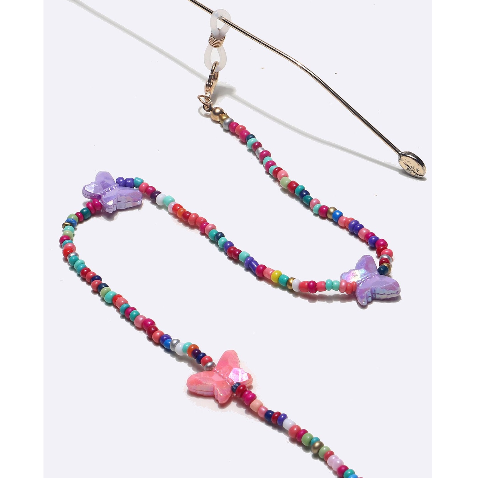 Gold-colored metal non-slip chain, with butterfly and colorful rice beads, for glasses and masks GL1366-1