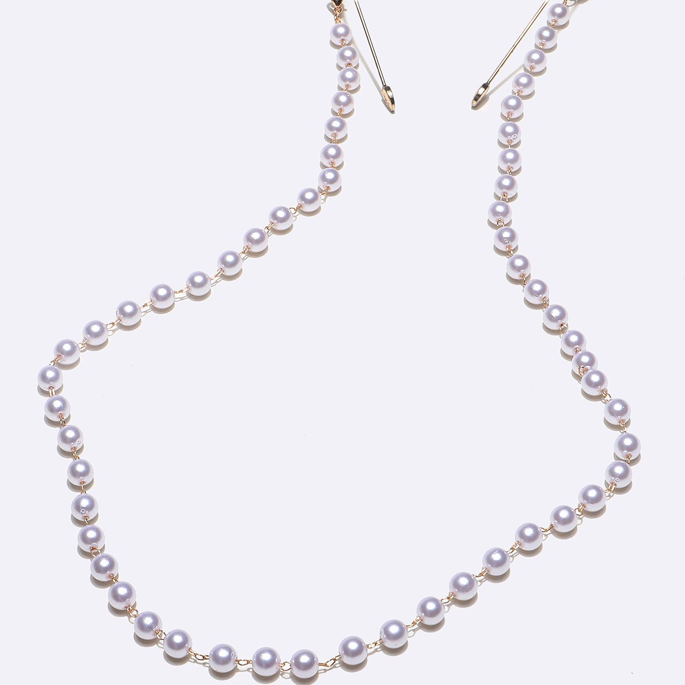 Gold-colored metal non-slip chain, with white pearls, for glasses and masks GL1380