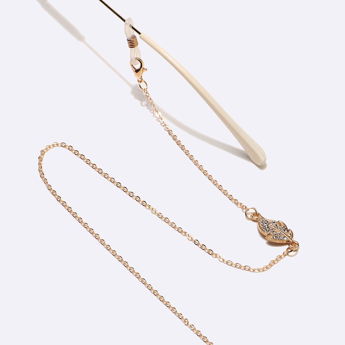 Gold-colored metal non-slip chain, with leaves with rhinestines, for glasses and masks GL1454