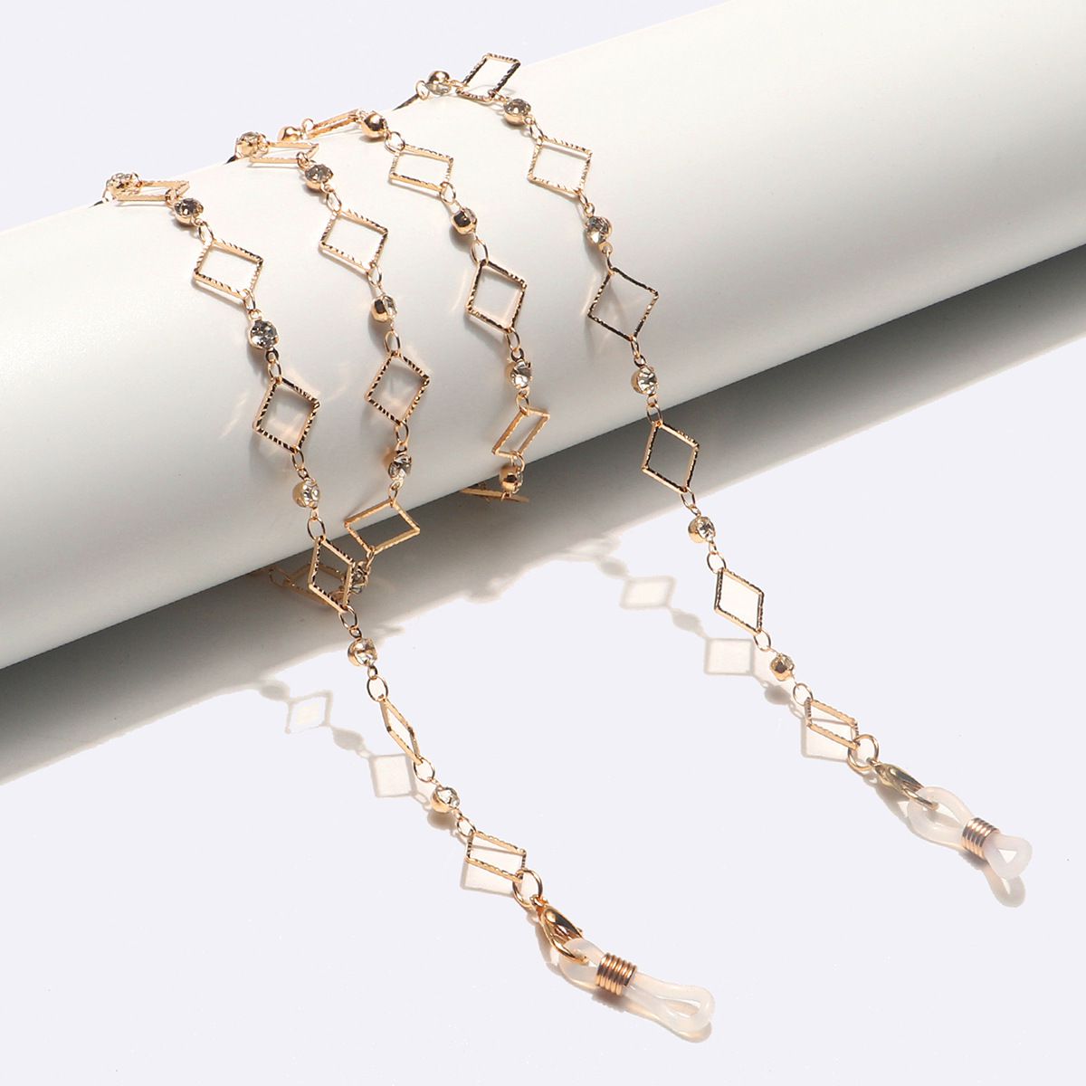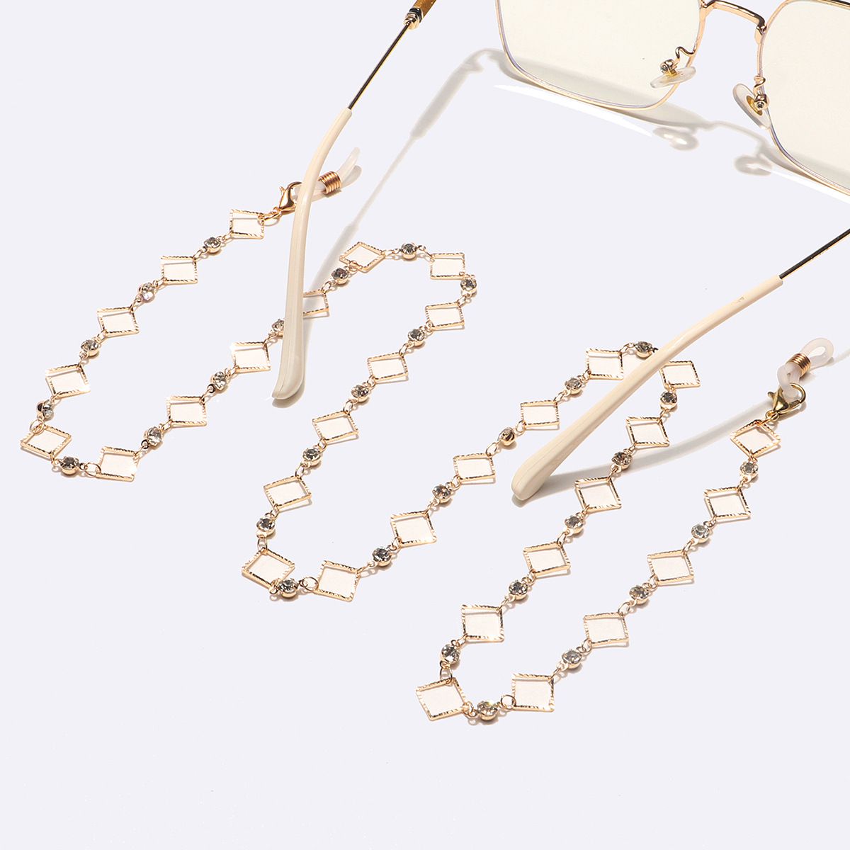 Gold-colored metal non-slip chain, with square and rhinestone, for glasses and masks GL1610