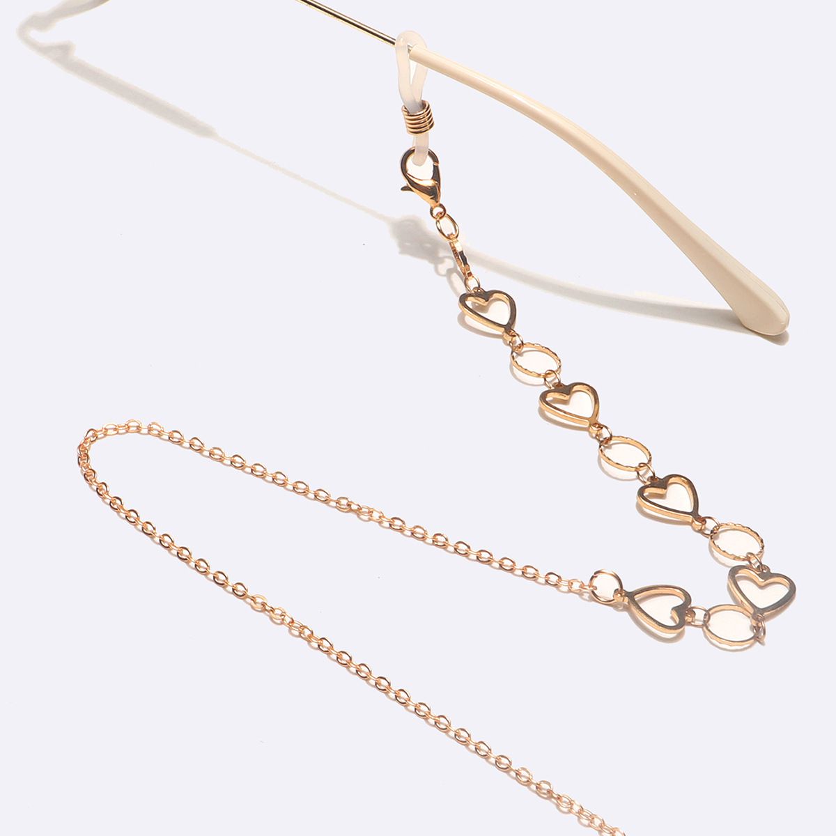 Gold-colored metal non-slip chain, with round and heart, for glasses and masks GL1613