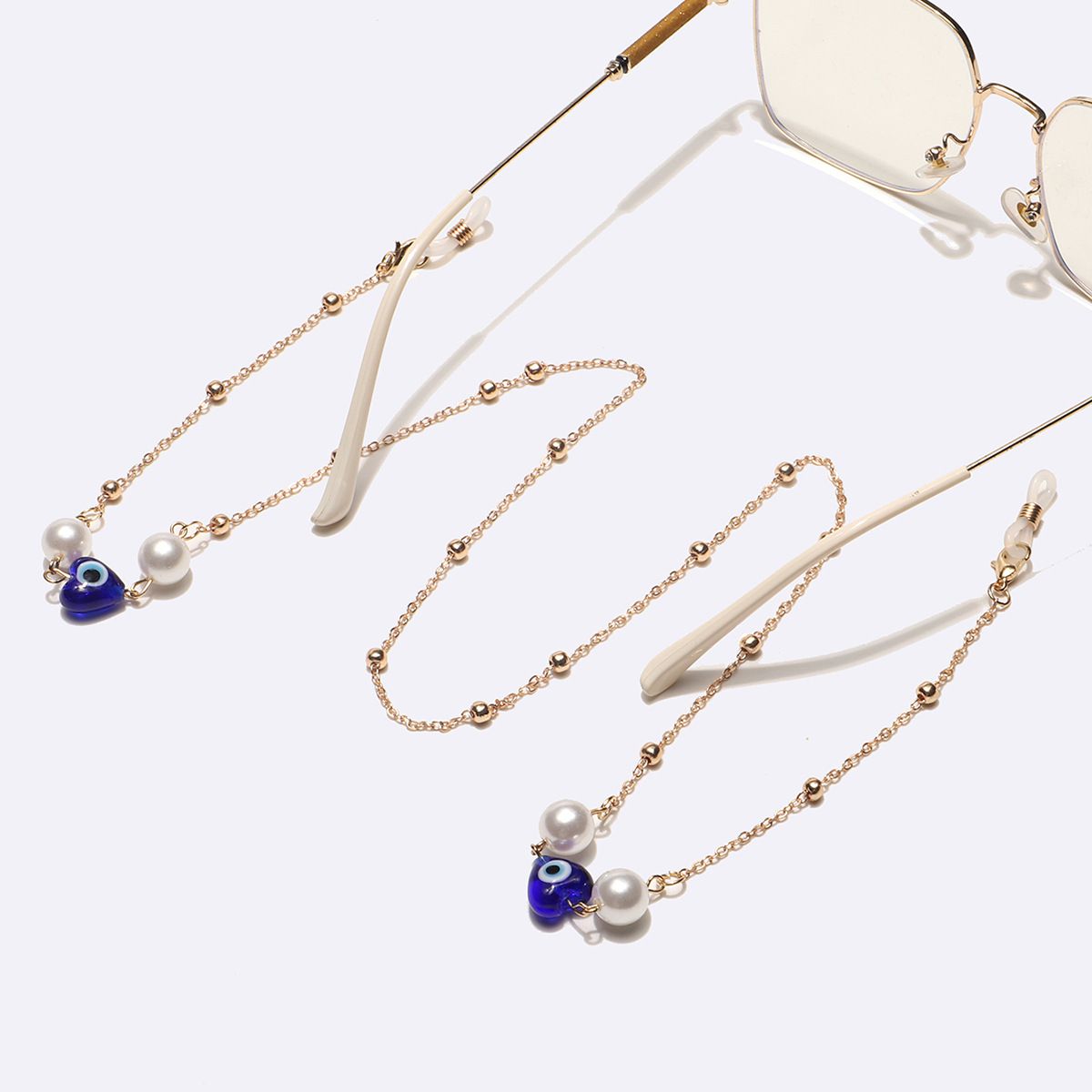 Gold-colored metal non-slip chain, with blue eyes, pearl and beads, for glasses and masks GL1736