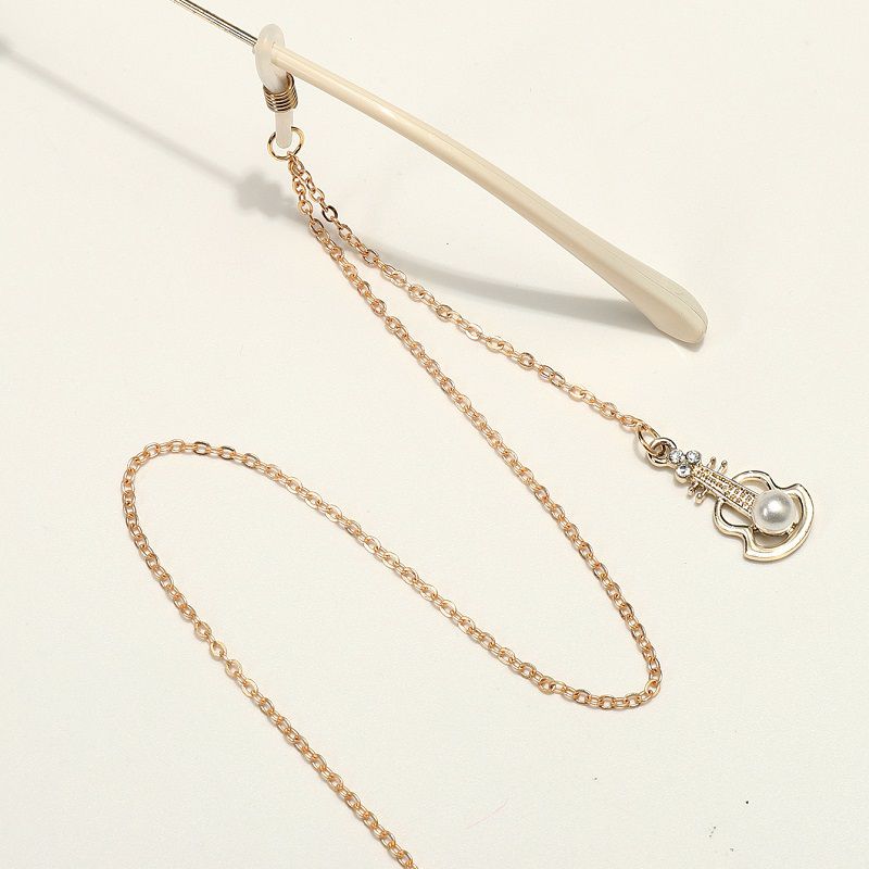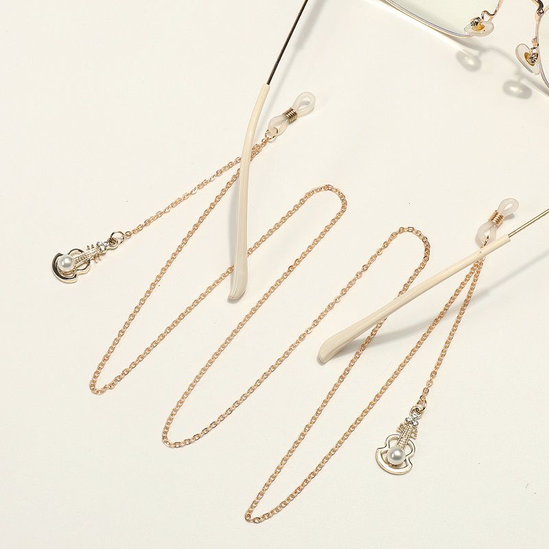 Gold-colored metal non-slip chain, with guitar and pearls, for glasses and masks GL1843