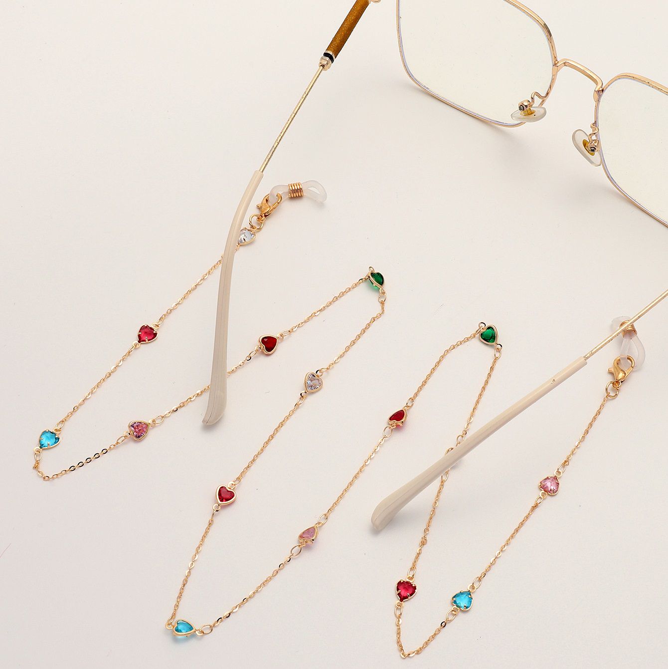 Gold-colored metal non-slip chain, with colorful heart, for glasses and masks GL1848