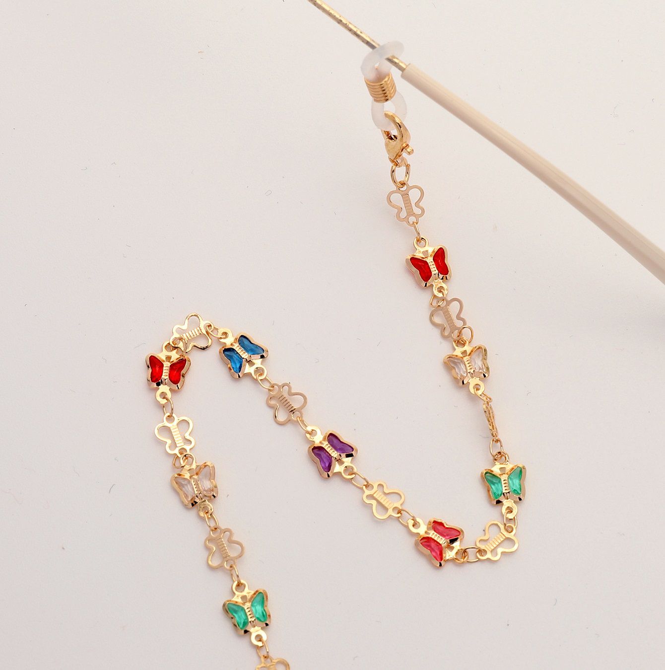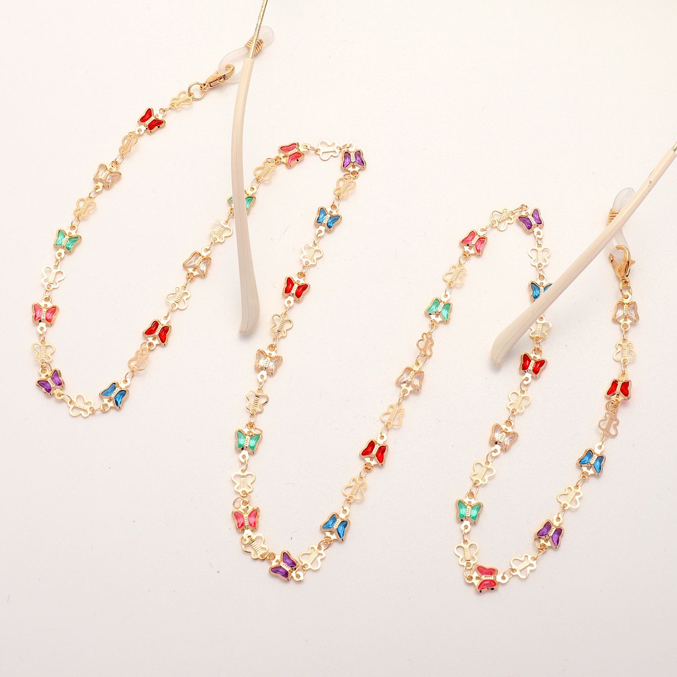 Gold-colored metal non-slip chain, with colorful butterfly, for glasses and masks GL1849