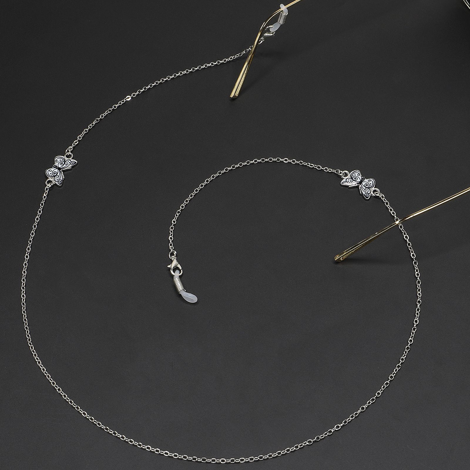 Silver-colored metal non-slip chain, with butterfly, for glasses and masks GL235