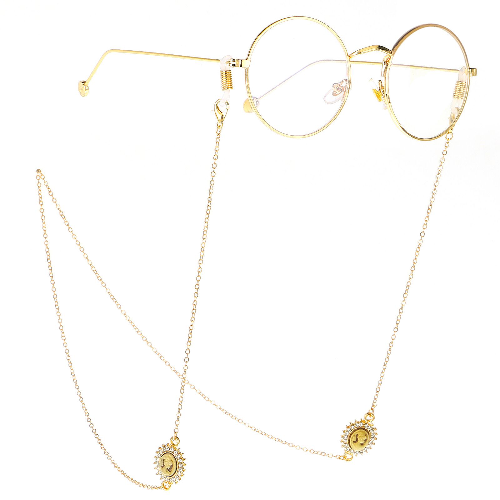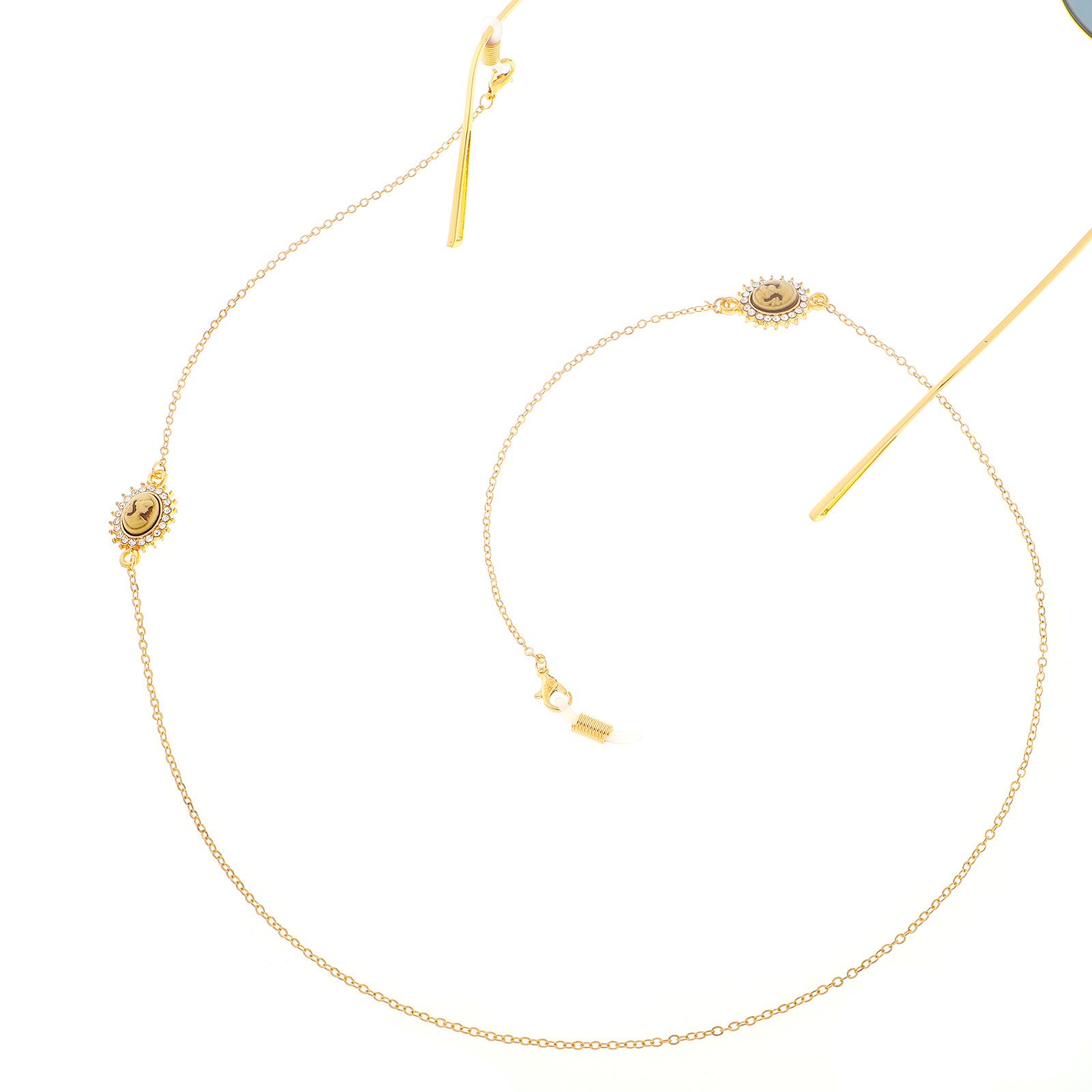Gold-colored metal non-slip chain, with portraits with rhinestone, for glasses and masks GL261