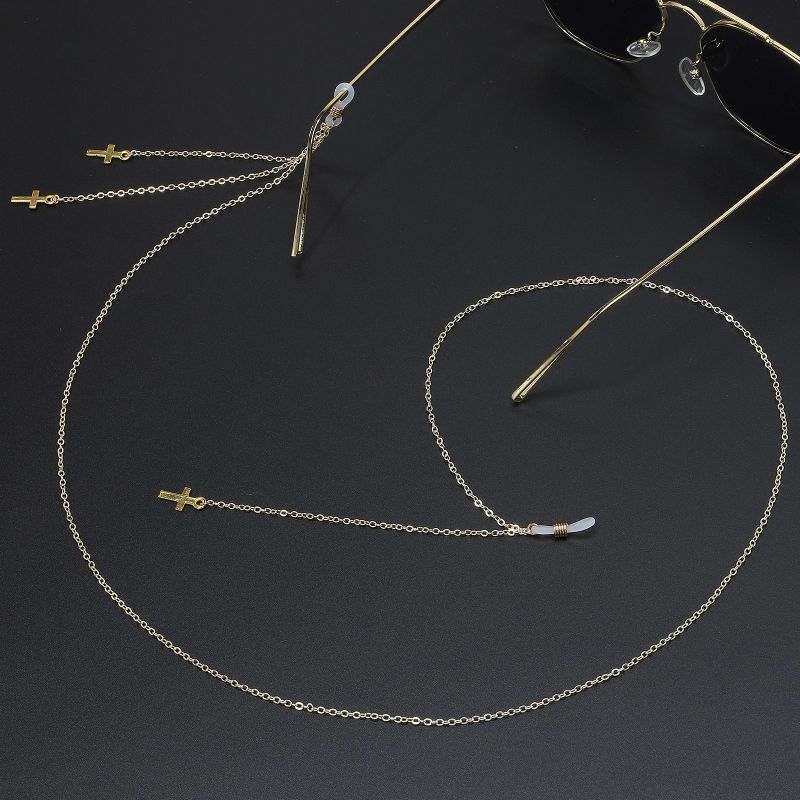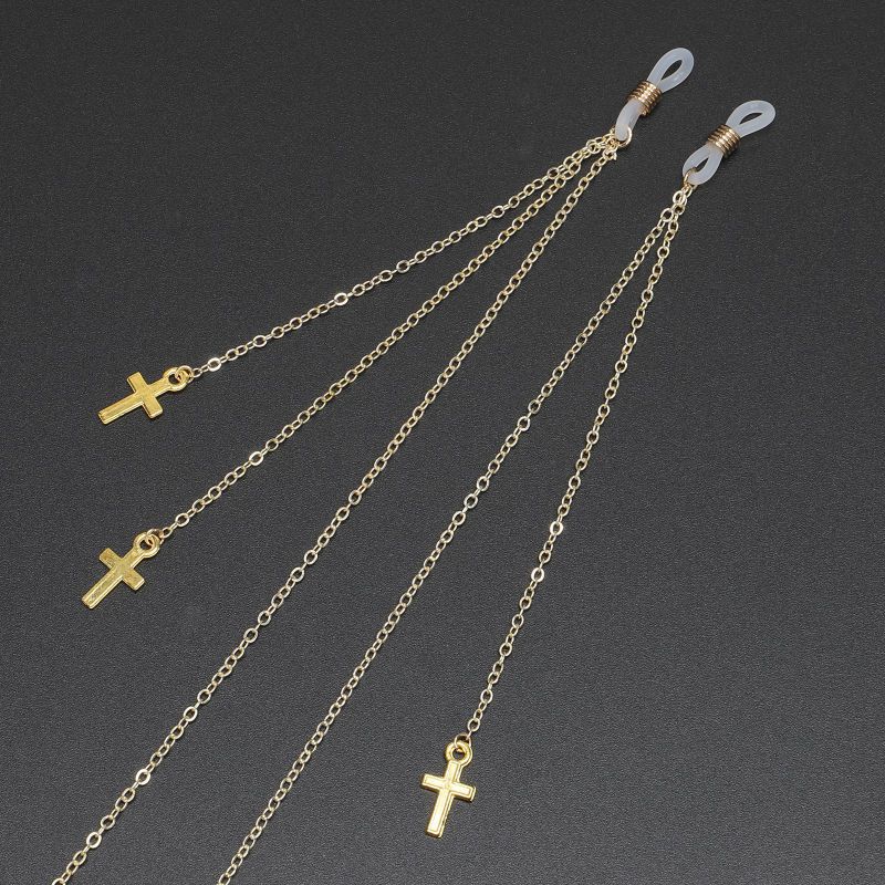Gold-colored metal non-slip chain, with a cross-shaped pendant, for glasses and masks GL298