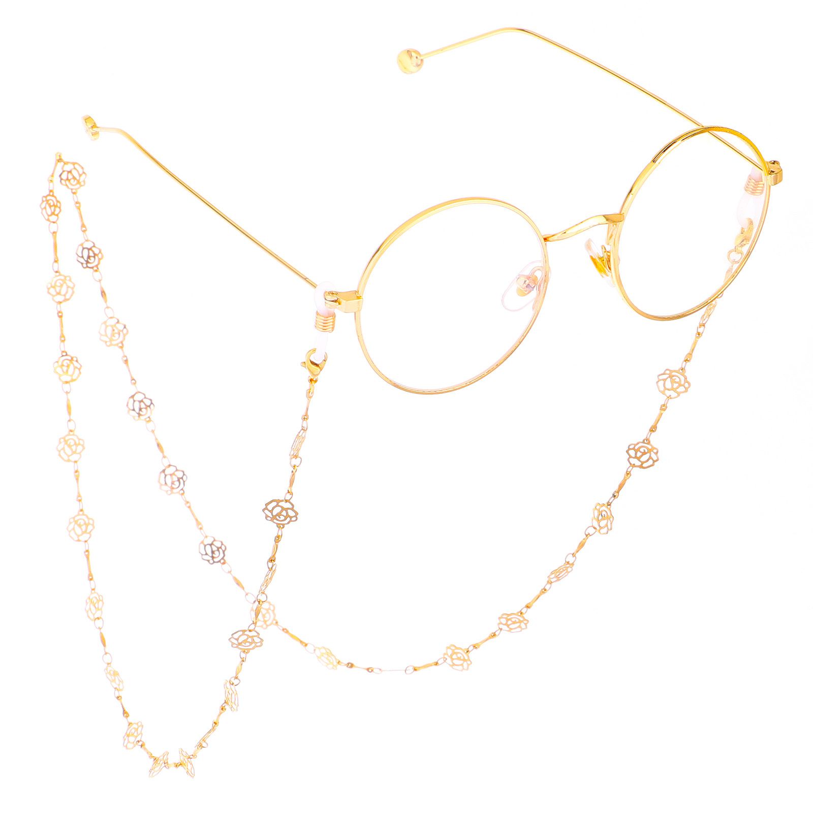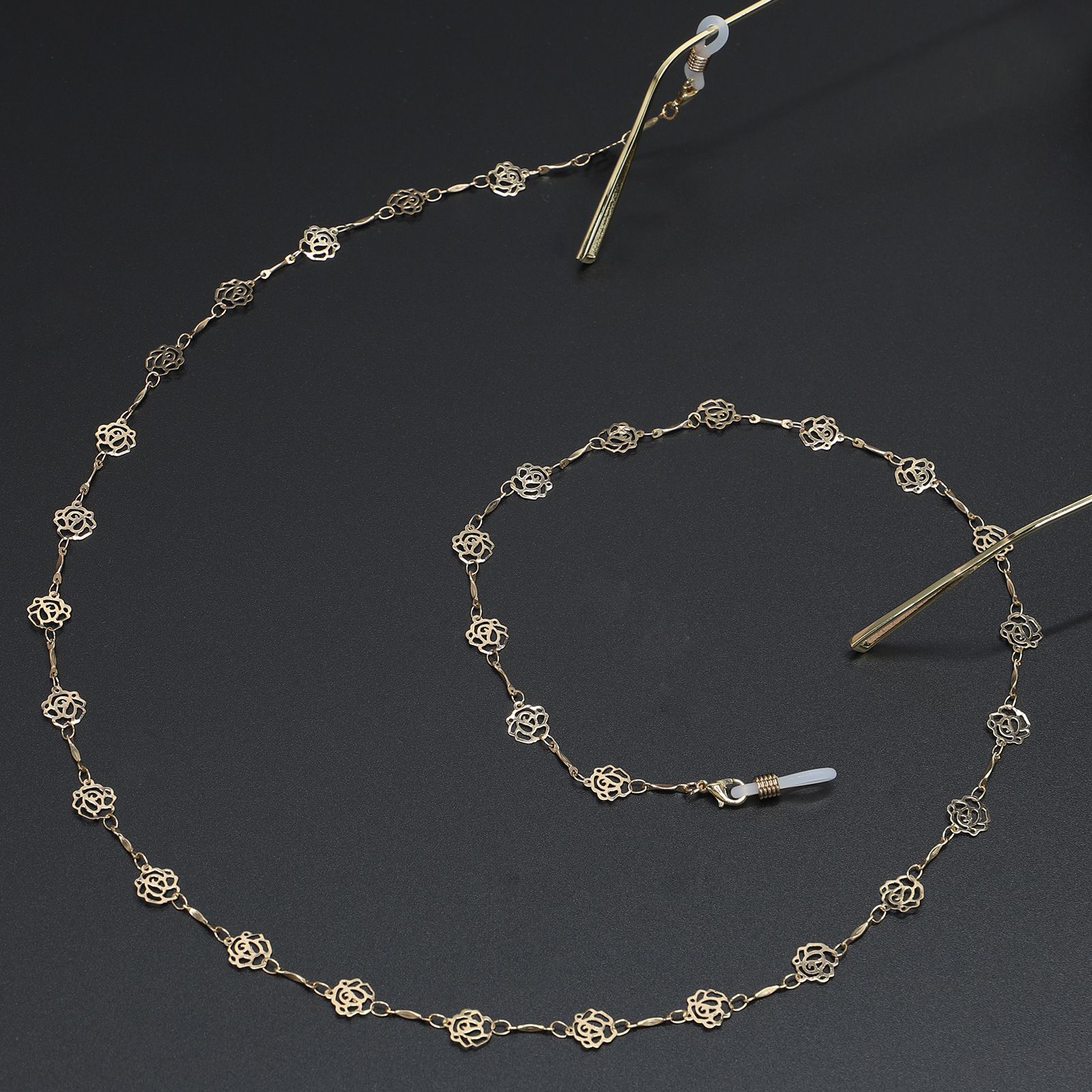 Gold-colored metal non-slip chain, with hollow flower, for glasses and masks GL334