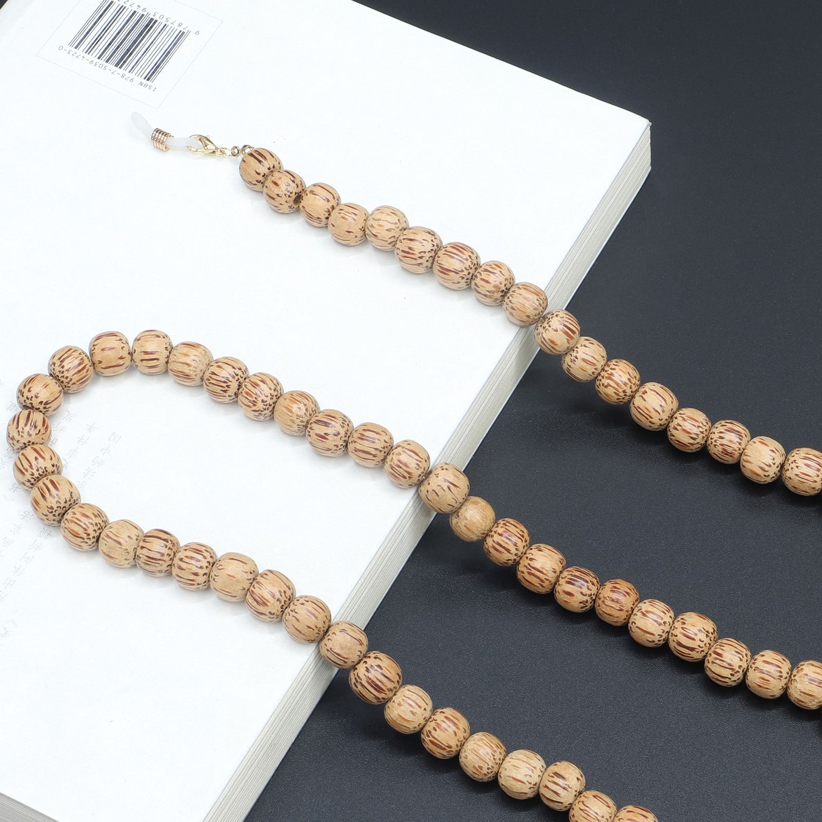 Metal non-slip natural coconut shell chain, round beads, for glasses and masks GL340