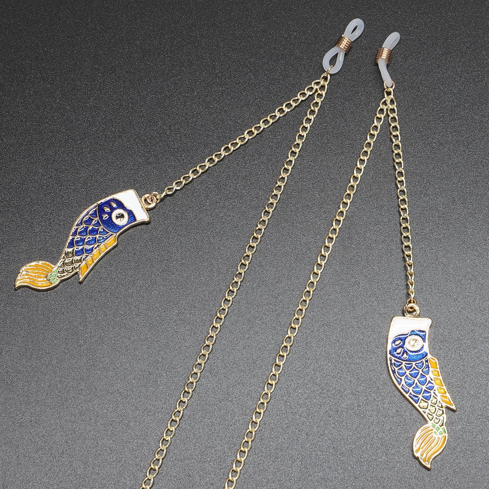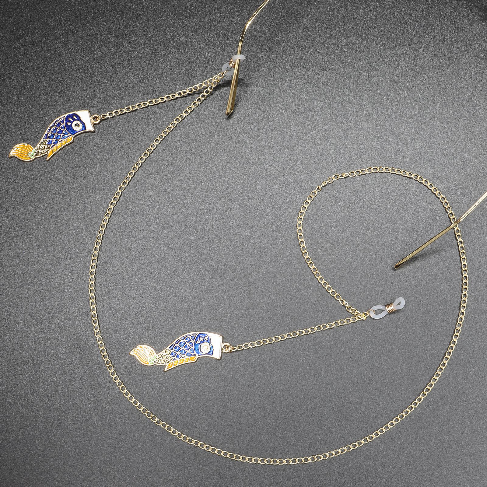 Gold-colored metal non-slip chain, with pendant style carp, for glasses and masks GL375