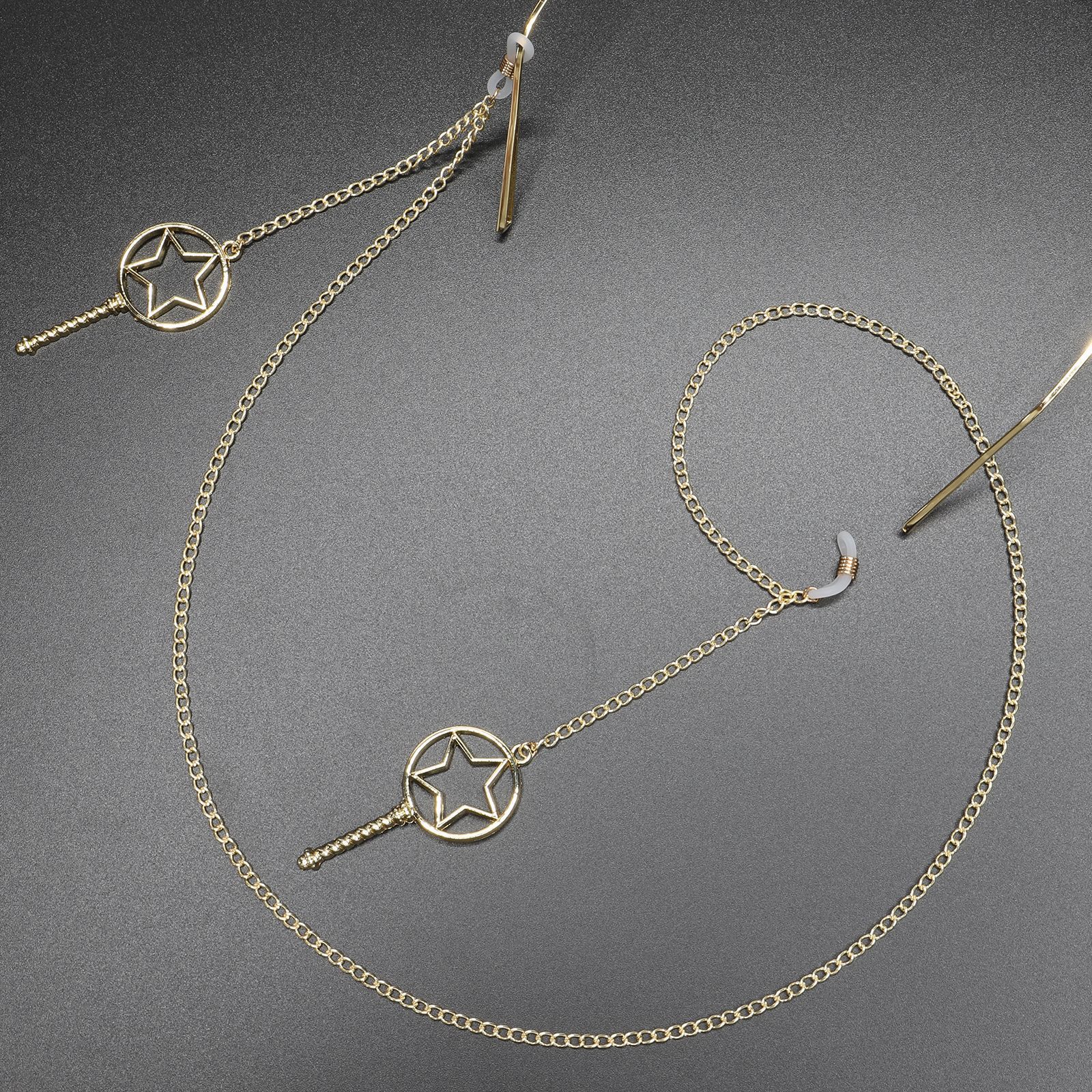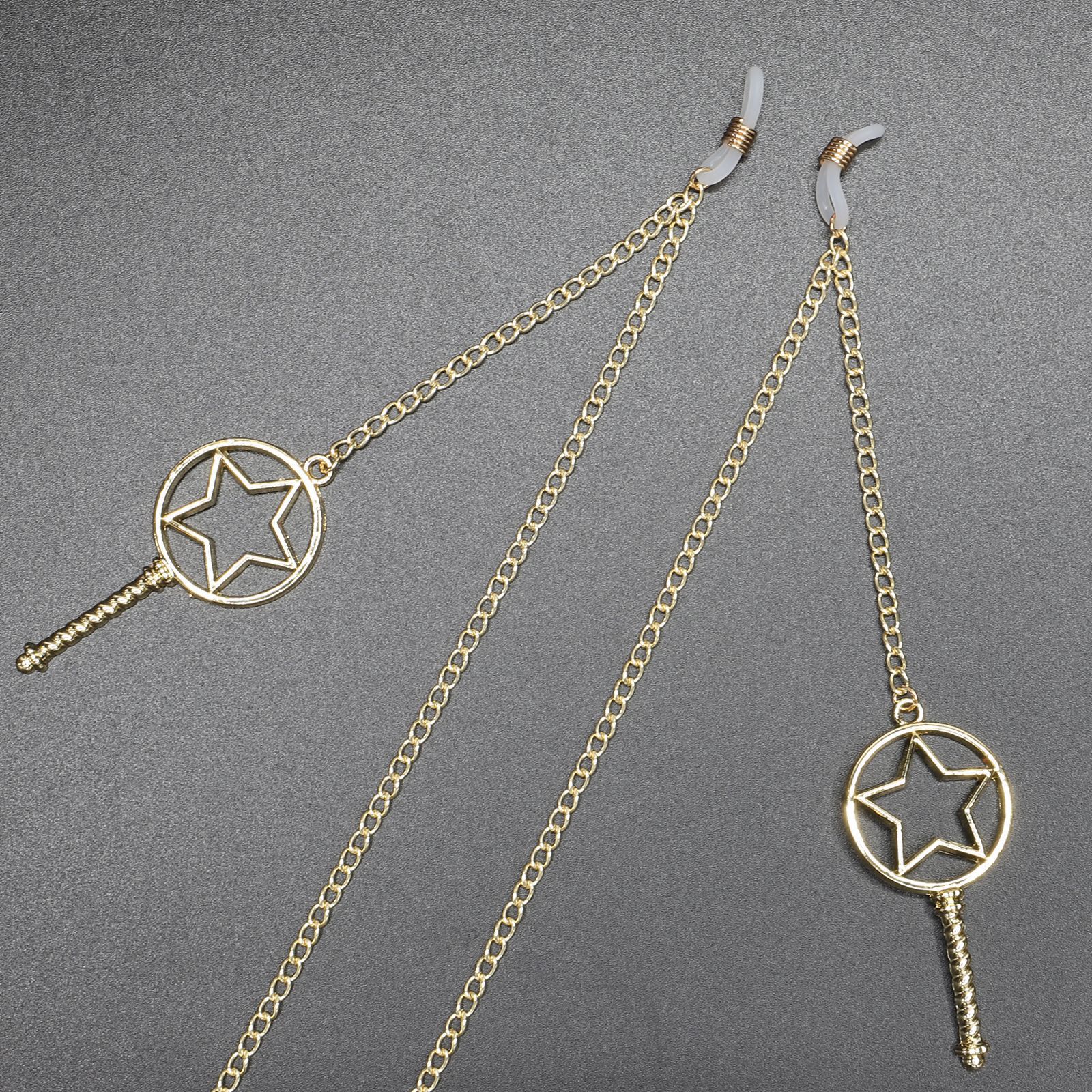 Gold-colored metal non-slip chain, with pendant style star and magic wand, for glasses and masks GL376