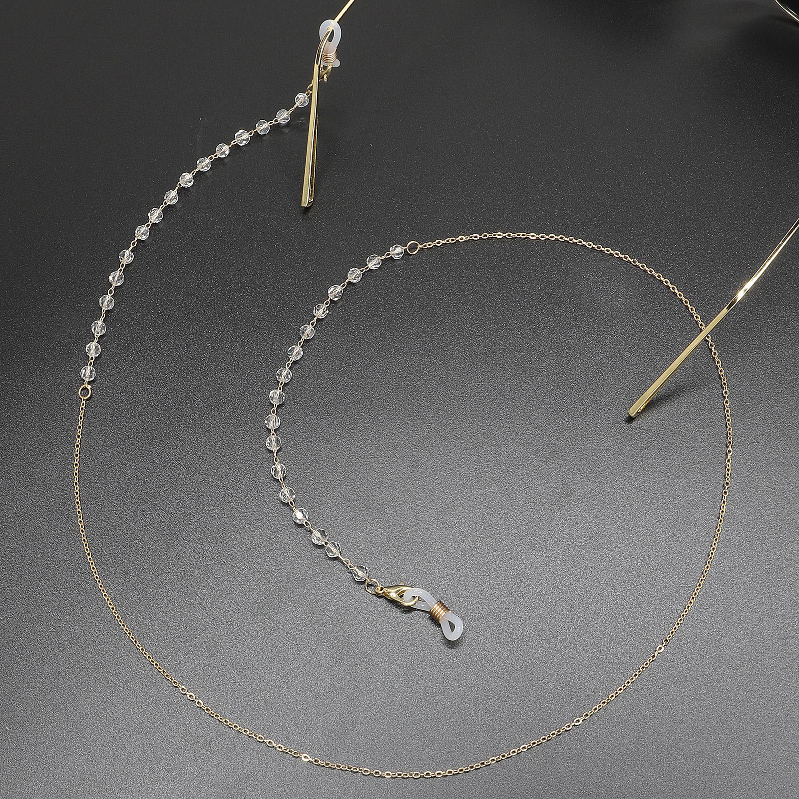 Gold-colored metal non-slip chain, with crystal, for glasses and masks GL397