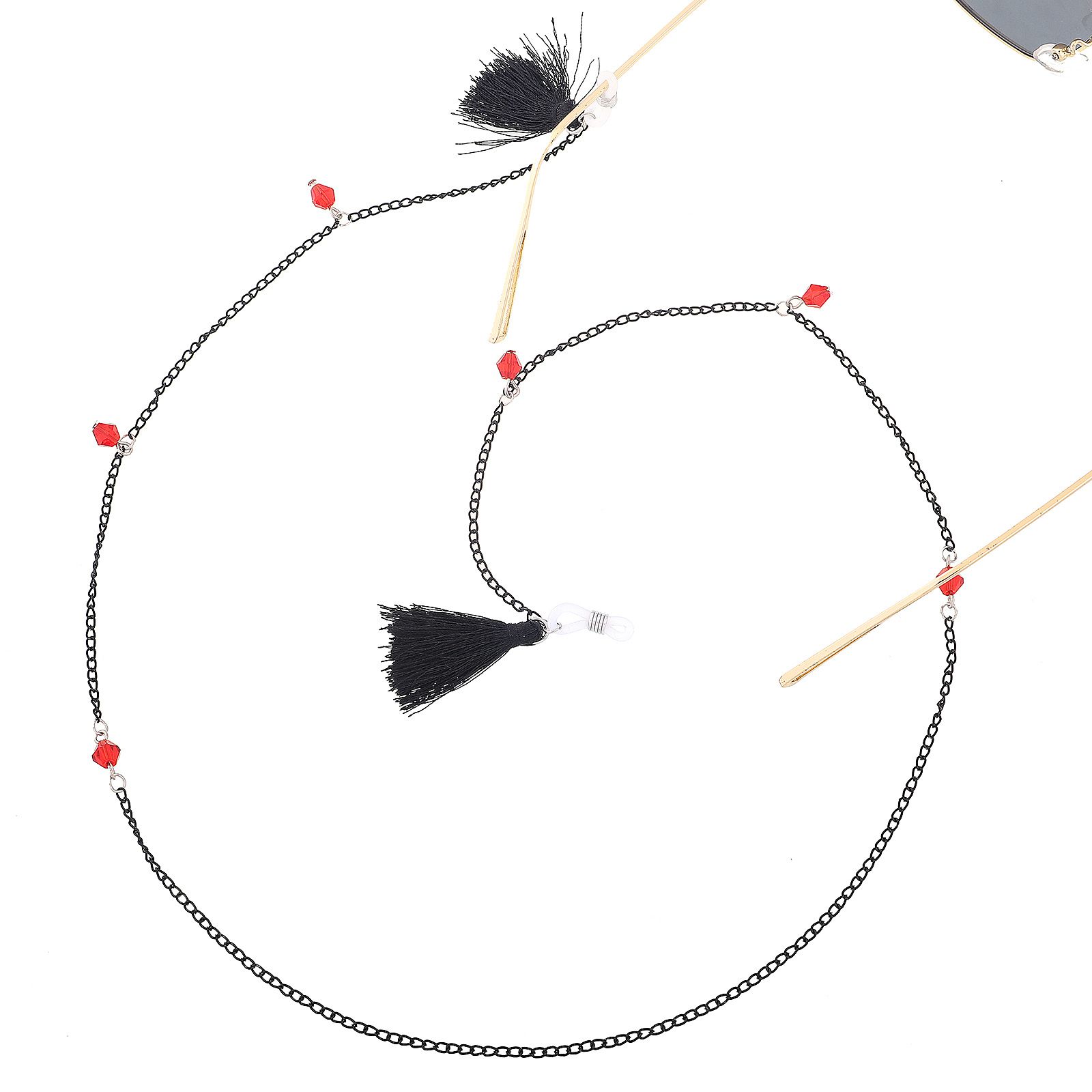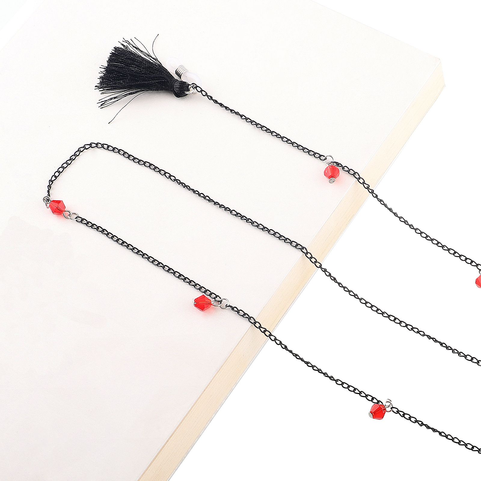 Black-colored metal non-slip chain, with pendant black tassel and crystal, for glasses and masks GL409