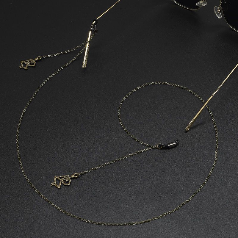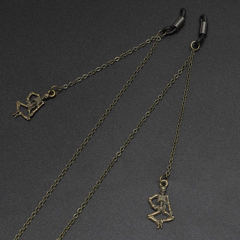 Bronze-colored metal non-slip chain, with skeleton pendant, for glasses and masks GL469
