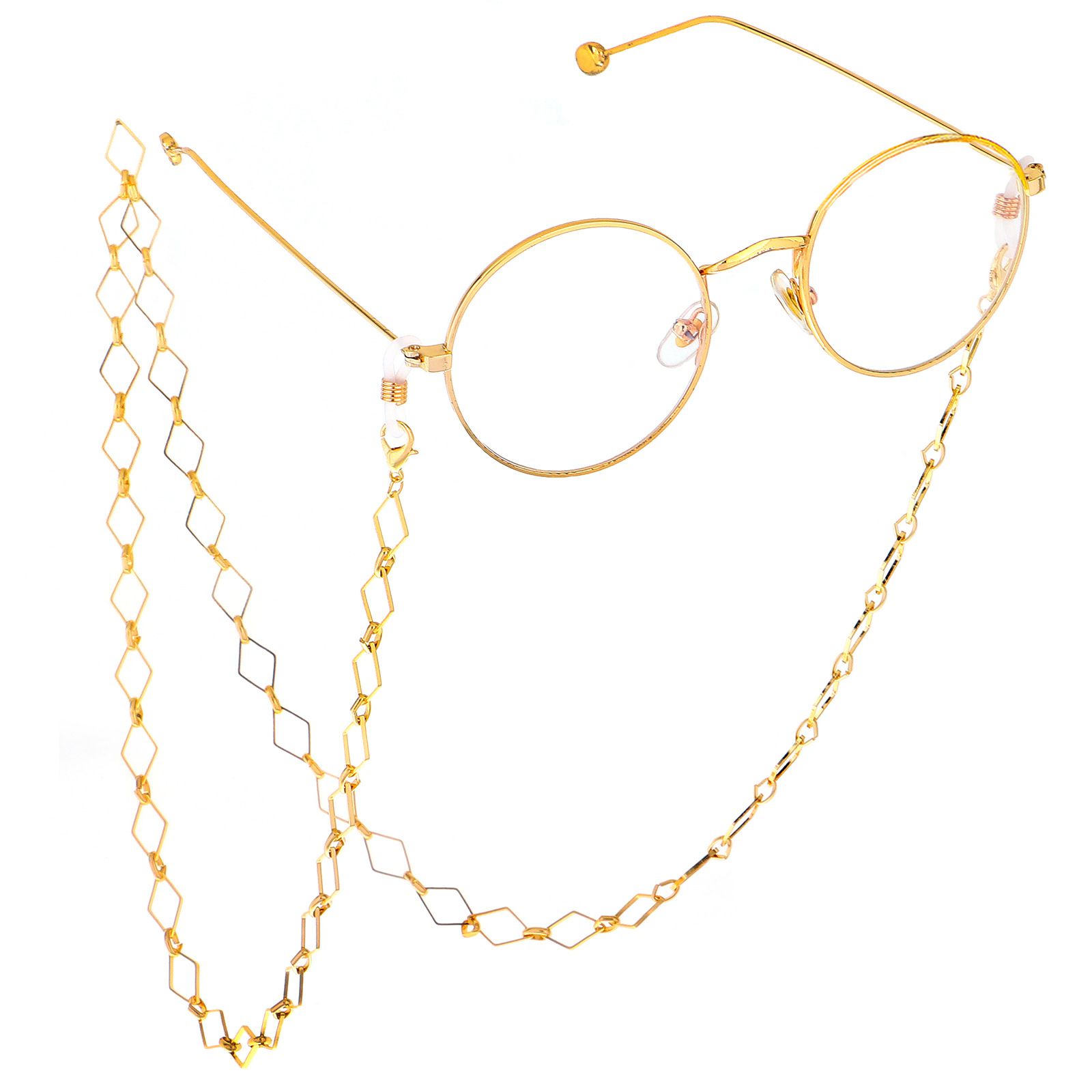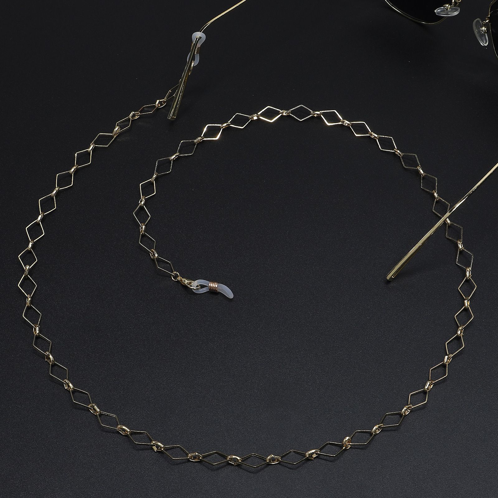 Gold-colored metal non-slip chain, with square diamond, for glasses and masks GL486