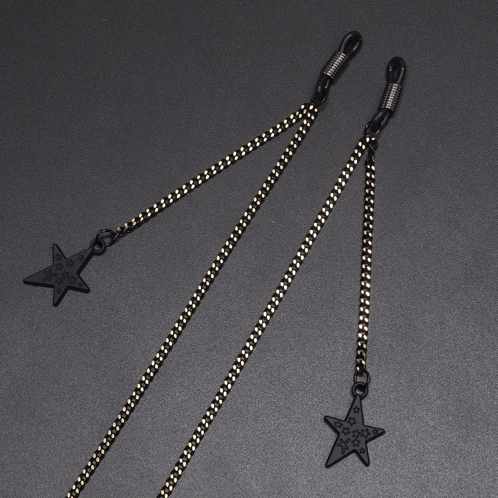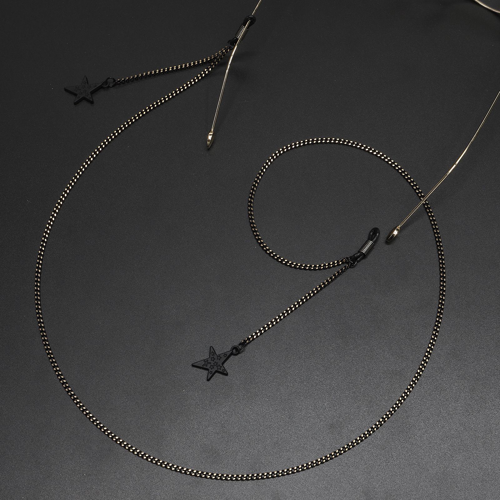 Black-colored metal non-slip chain, with pendant star, for glasses and masks GL498