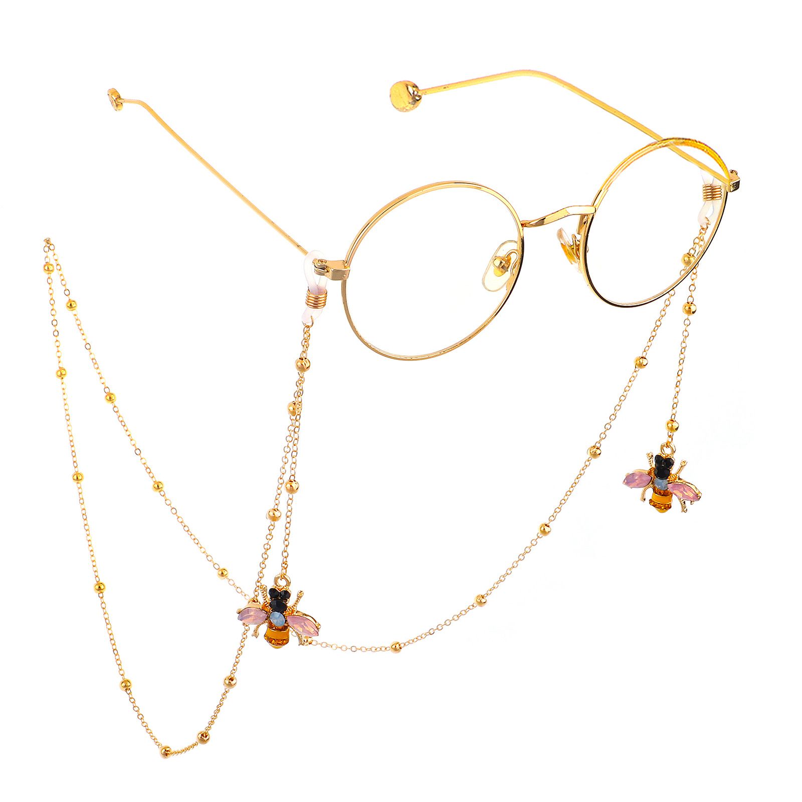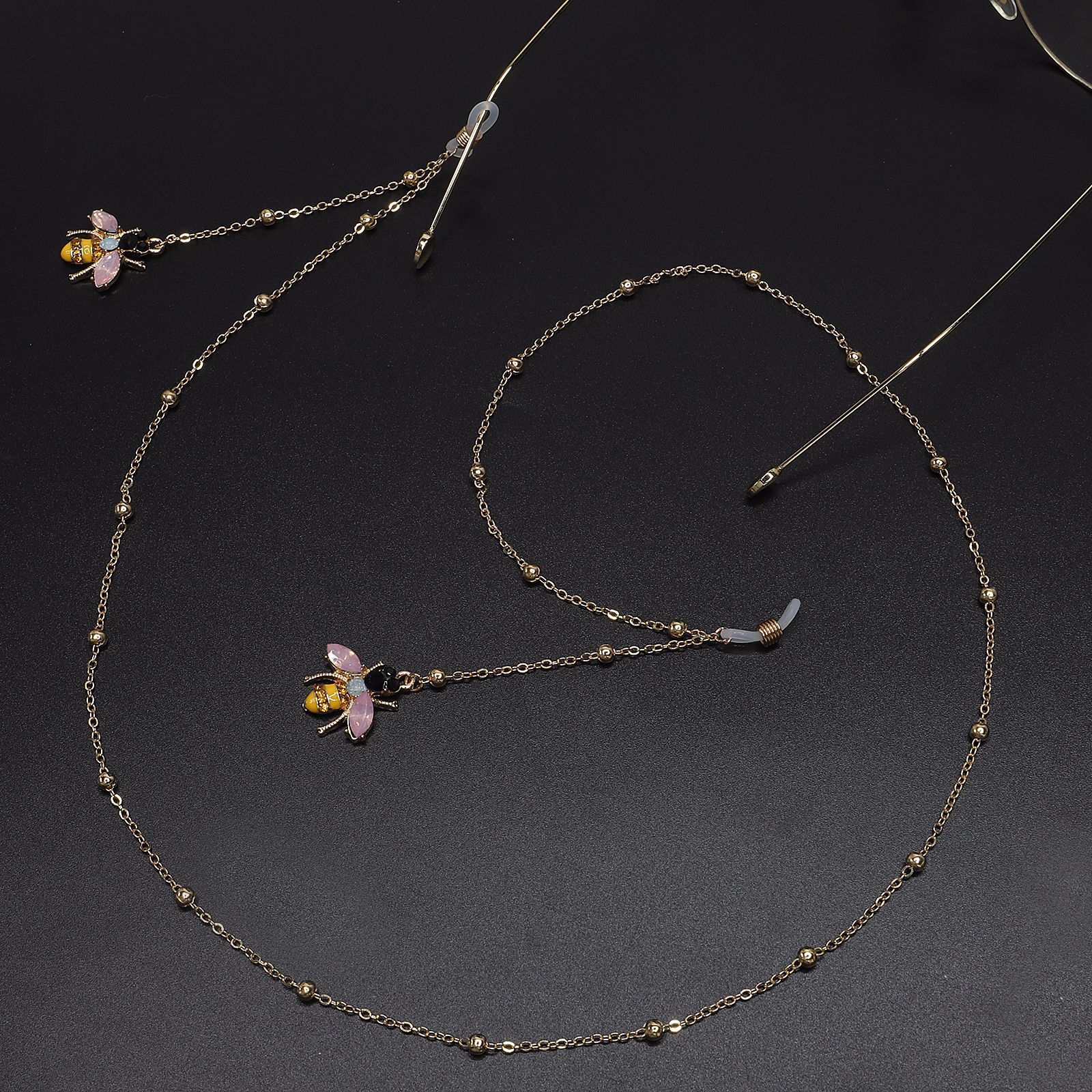 Gold-colored metal non-slip chain, with pendant of bee and beads, for glasses and masks GL547