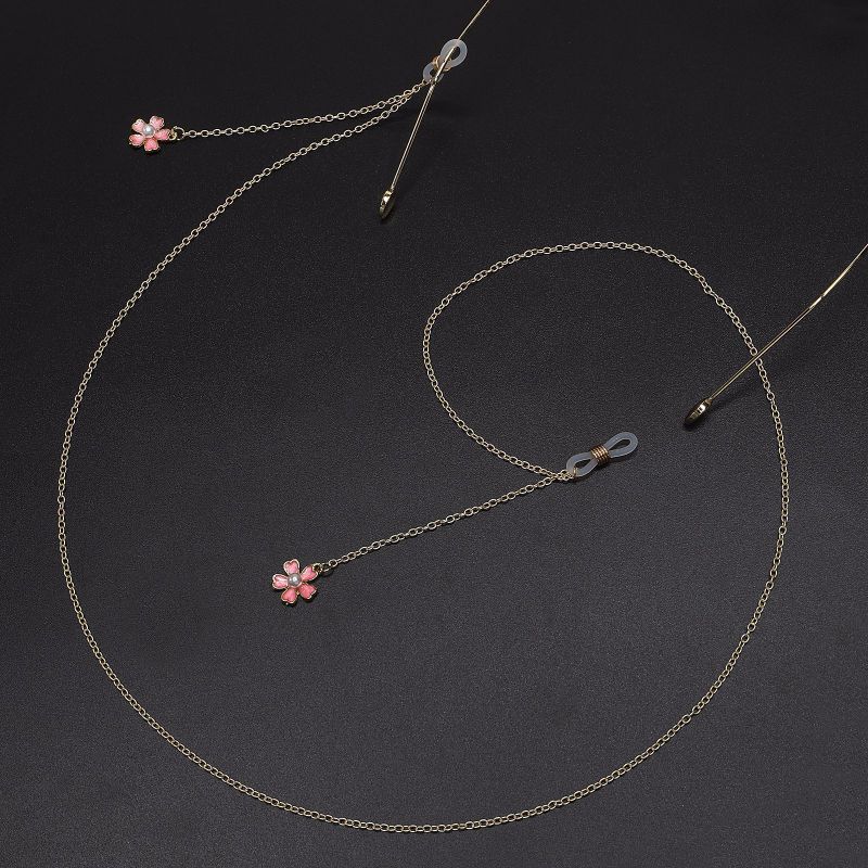 Gold-colored metal non-slip chain, with a flower and pearls, for glasses and masks GL564