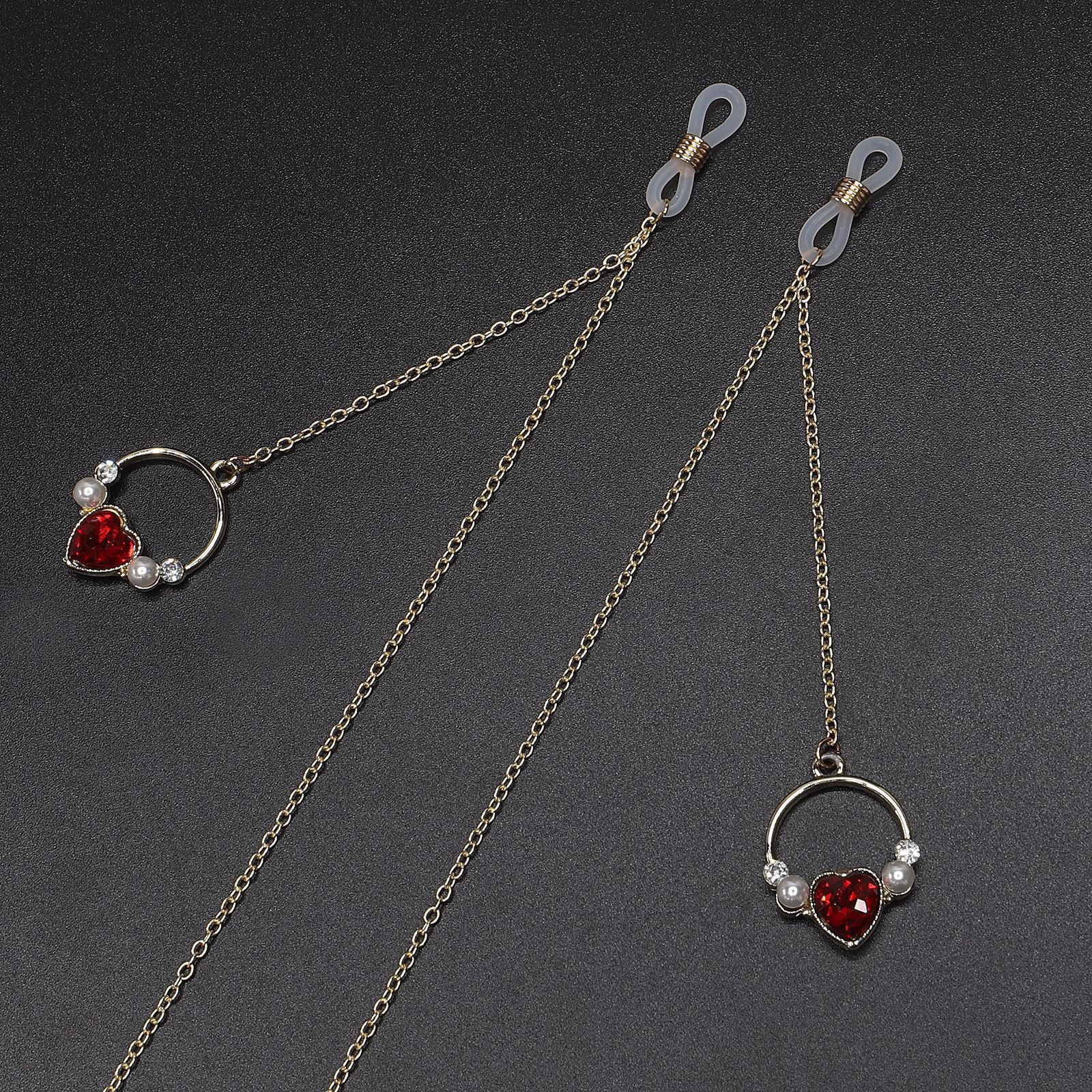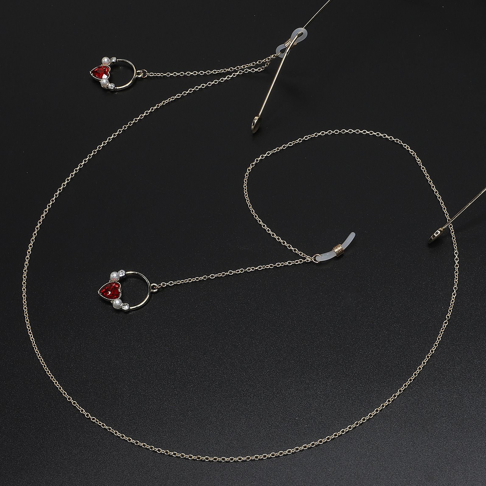 Gold-colored metal non-slip chain, with pendant heart with pearl, for glasses and masks GL570