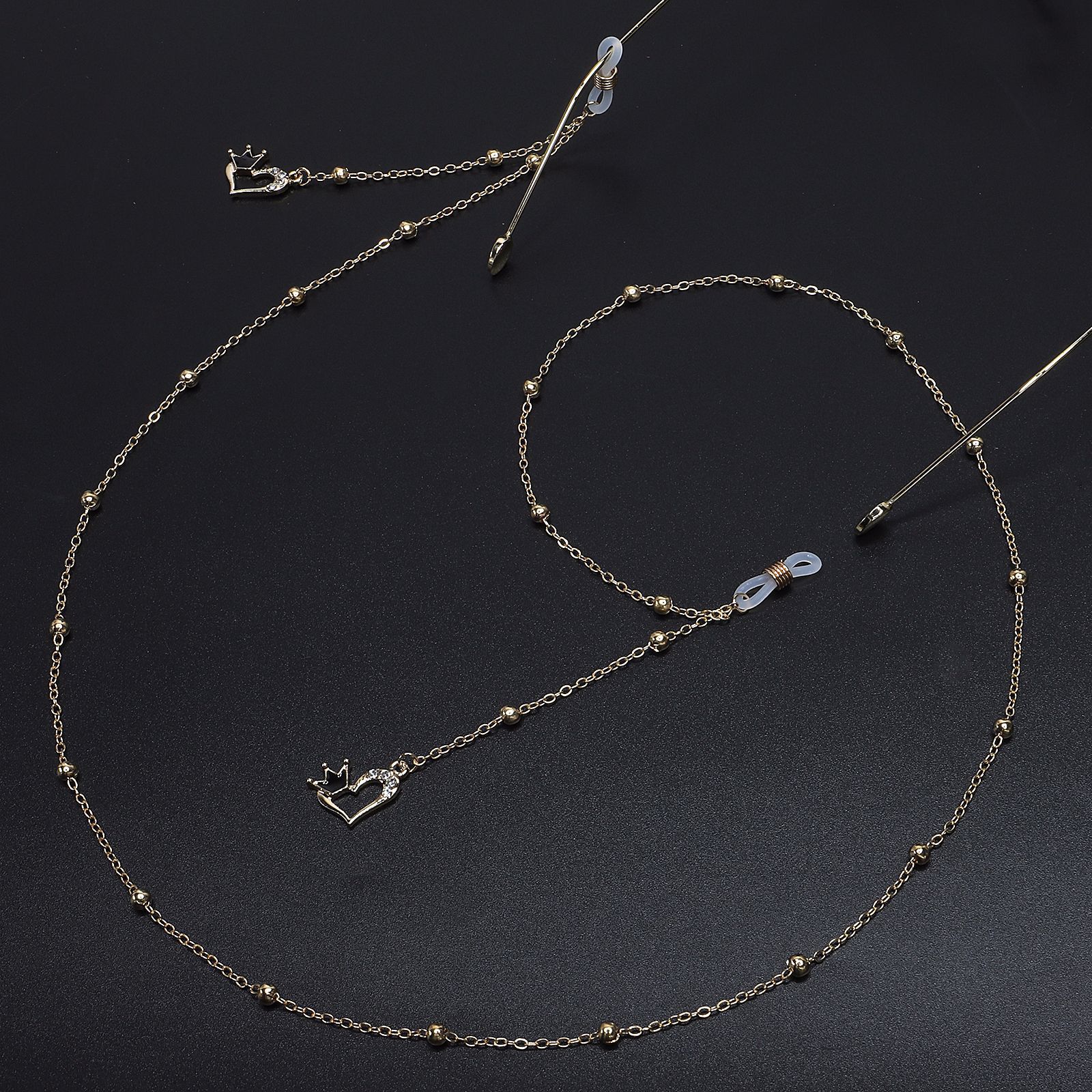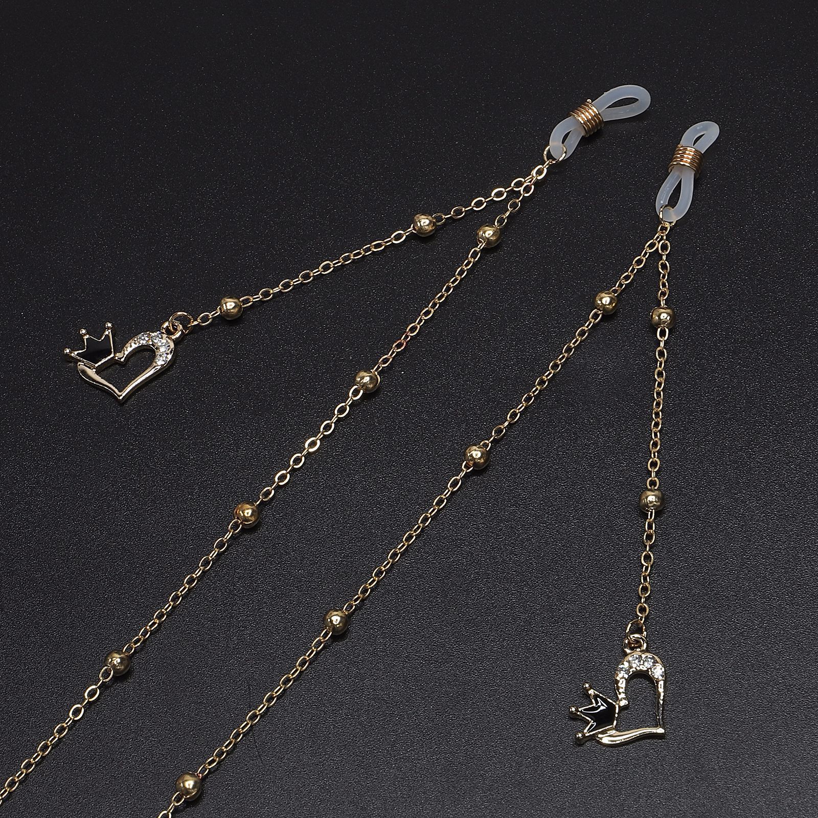 Metal non-slip chain, with pendant heart and rhinestones, for glasses and masks GL581