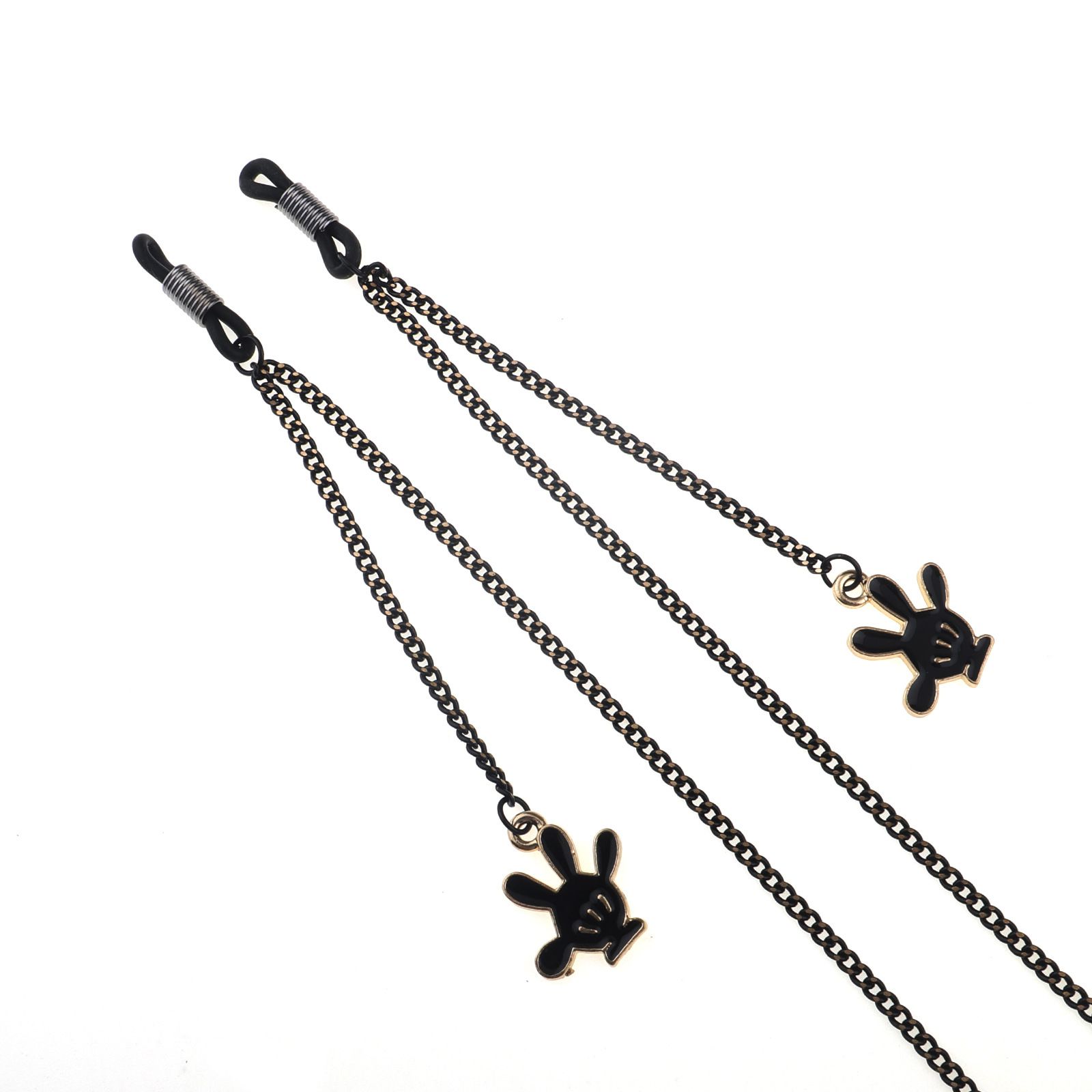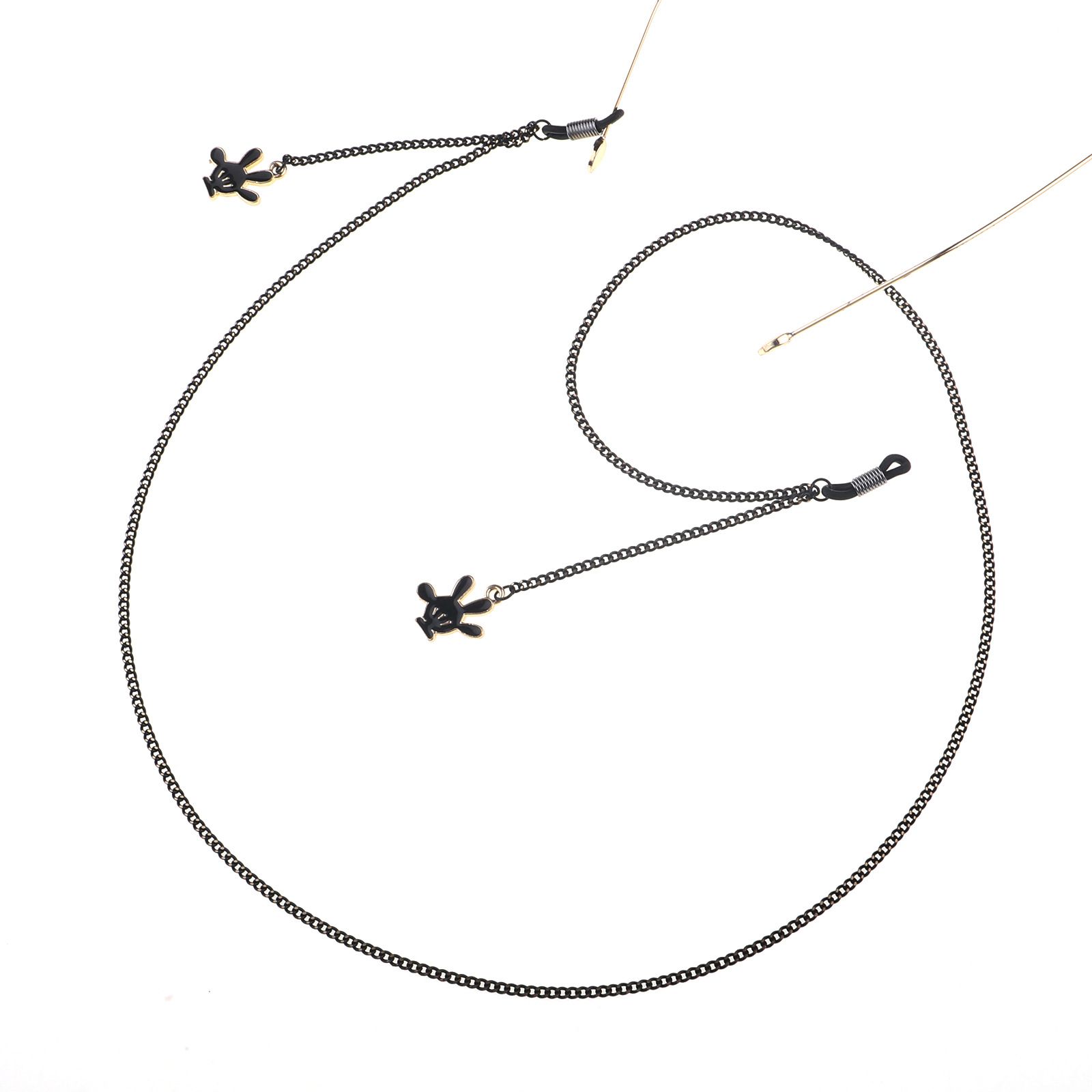 Black-colored metal non-slip chain, with pendant palm of cartoon, for glasses and masks GL784