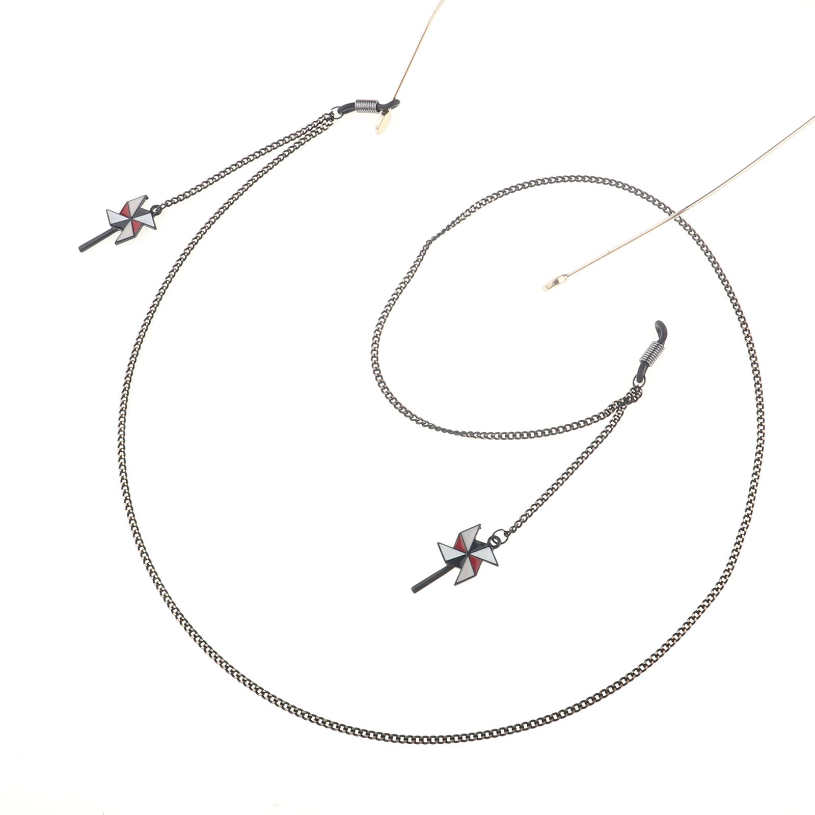 Black-colored metal non-slip chain, with pendant windmill of cartoon, for glasses and masks GL786