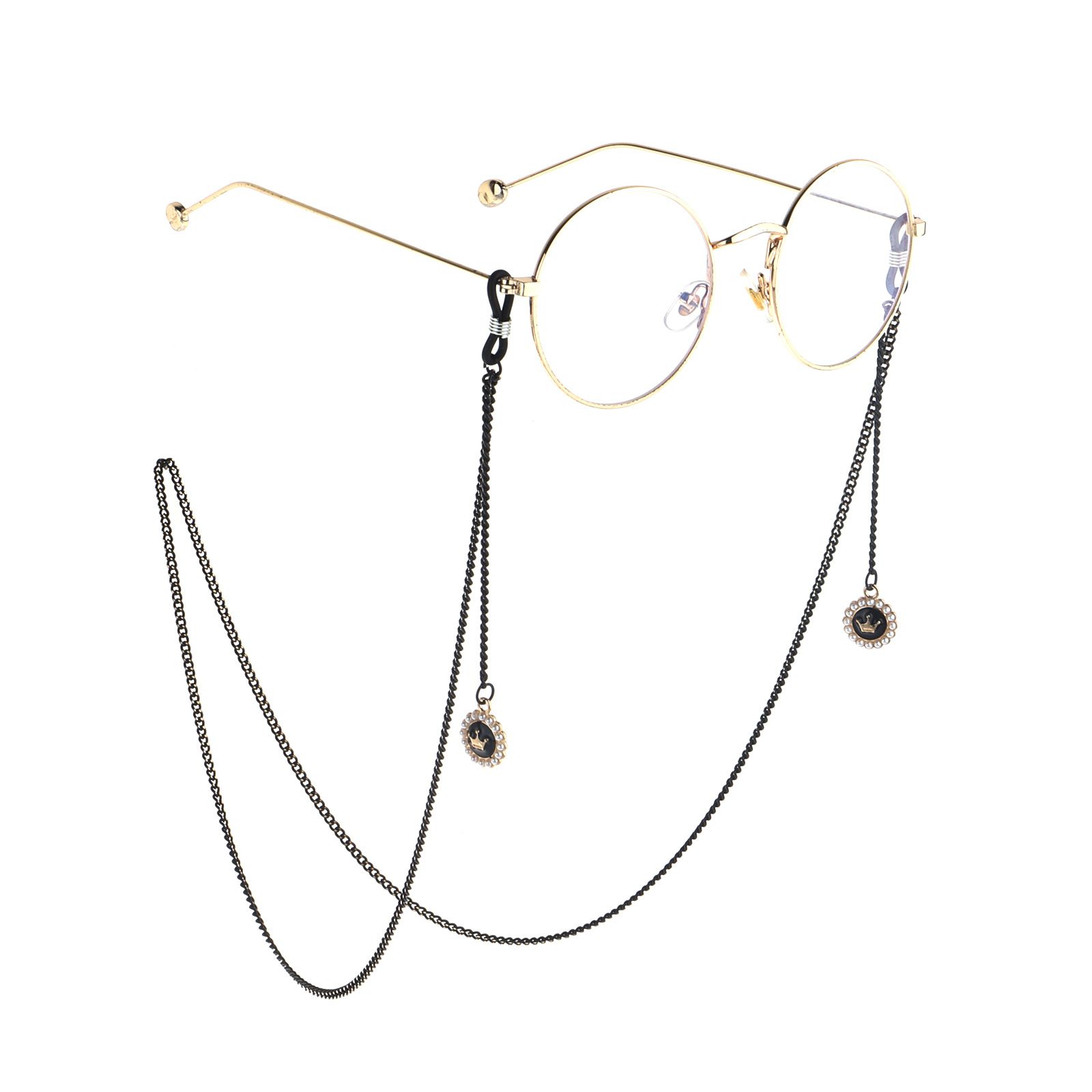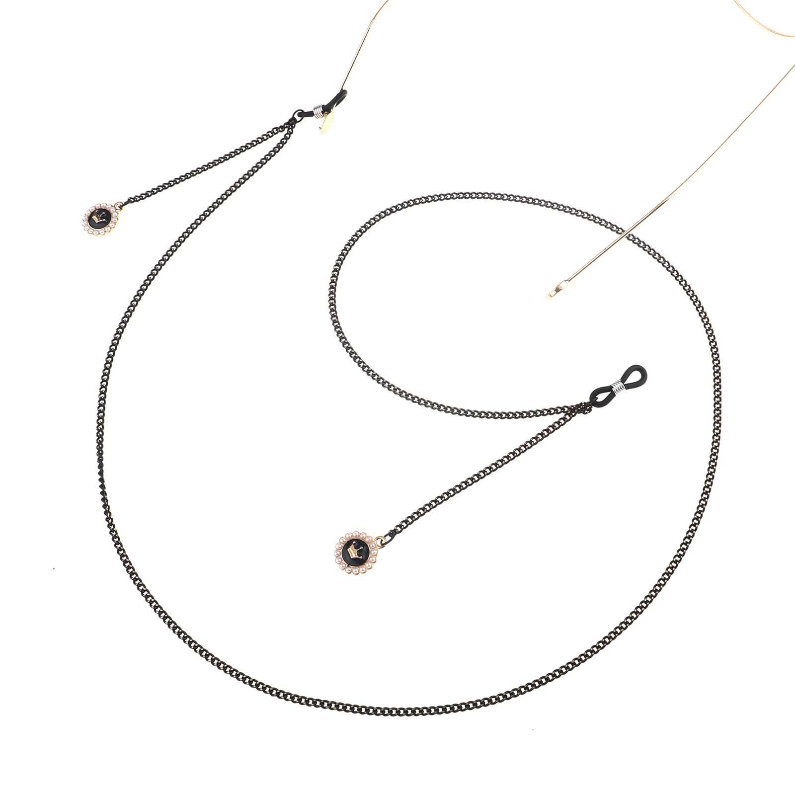 Black-colored metal non-slip chain, with pendant crow with pearl, for glasses and masks GL832