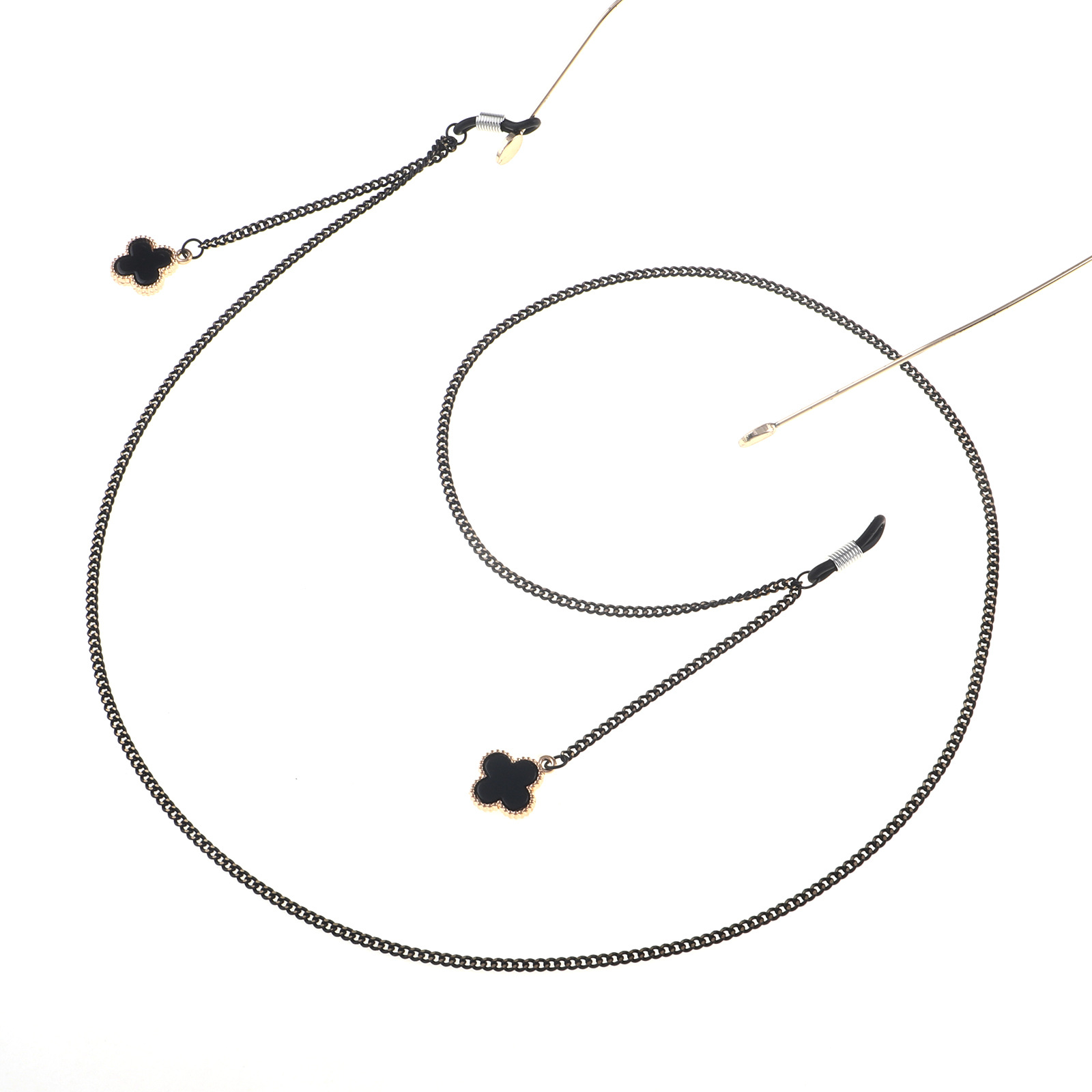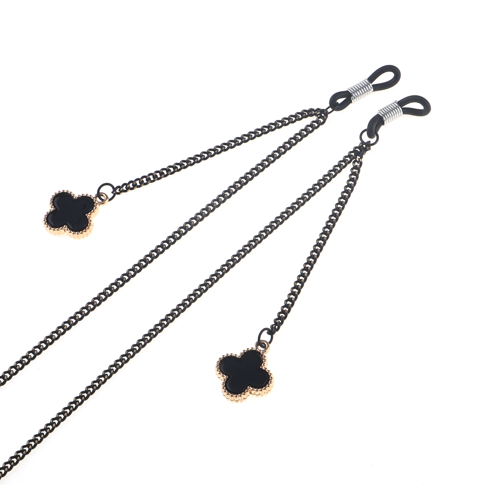 Black-colored metal non-slip chain, with pendant flower grass, for glasses and masks GL854