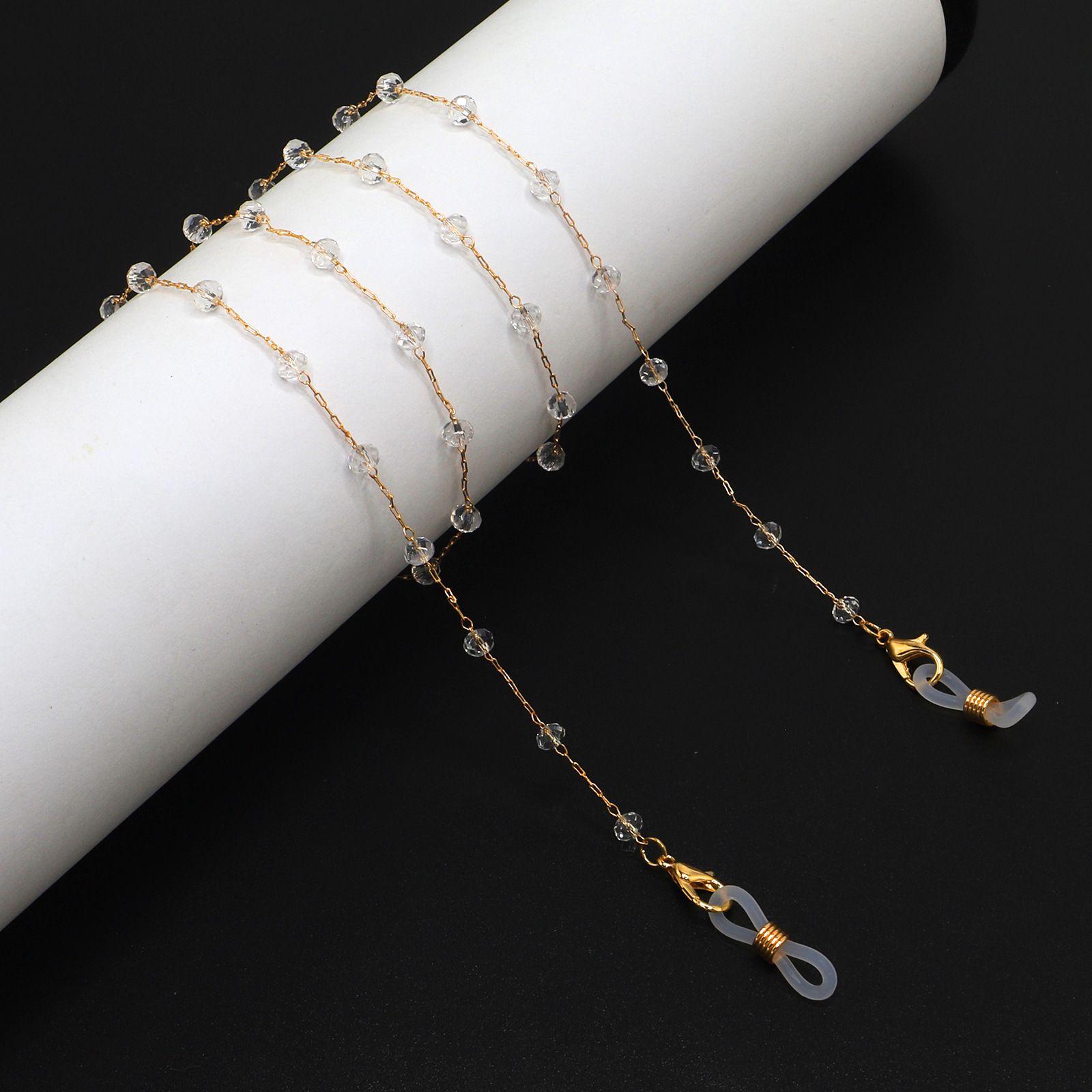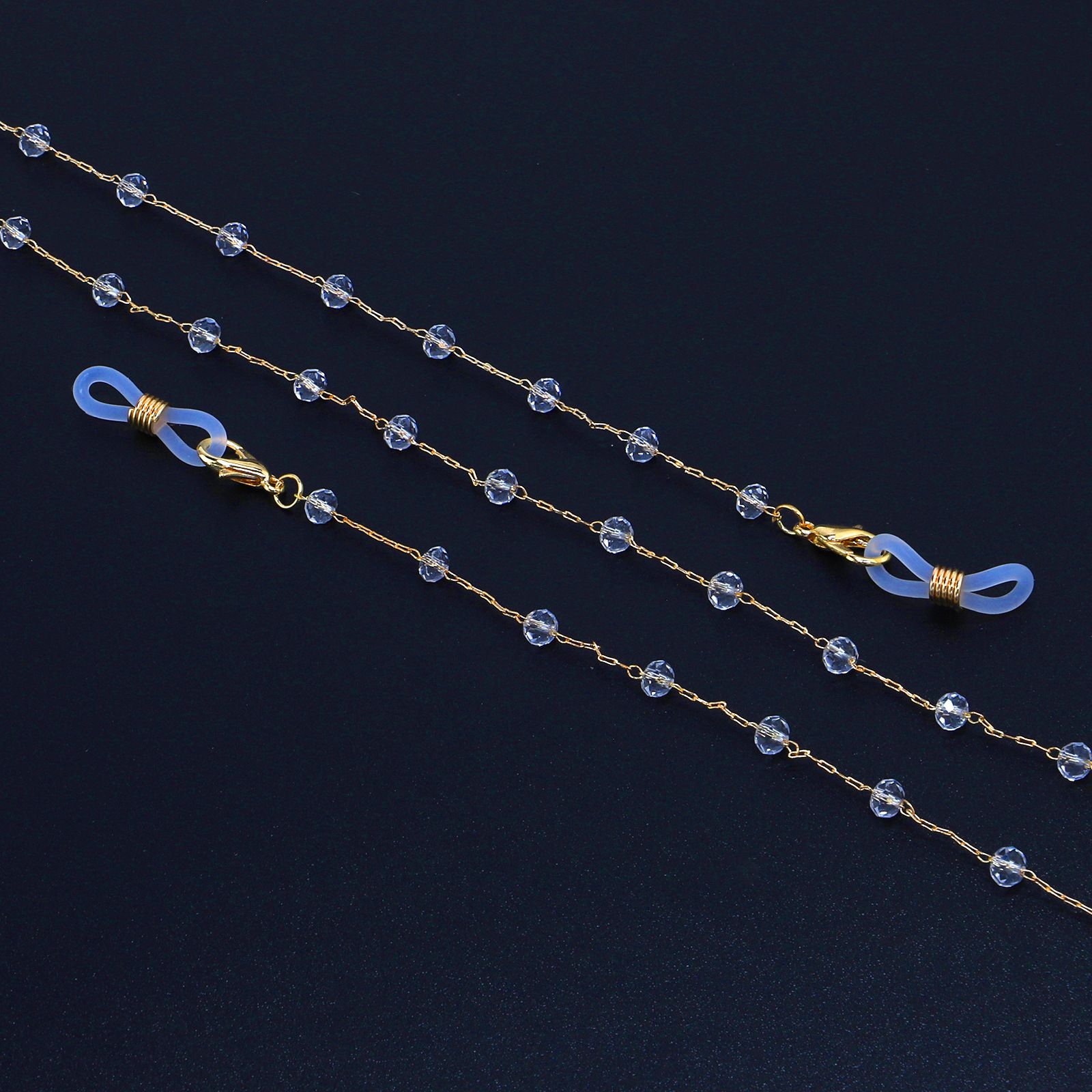 Gold-colored metal non-slip chain, with transparent crystal, for glasses and masks GL904