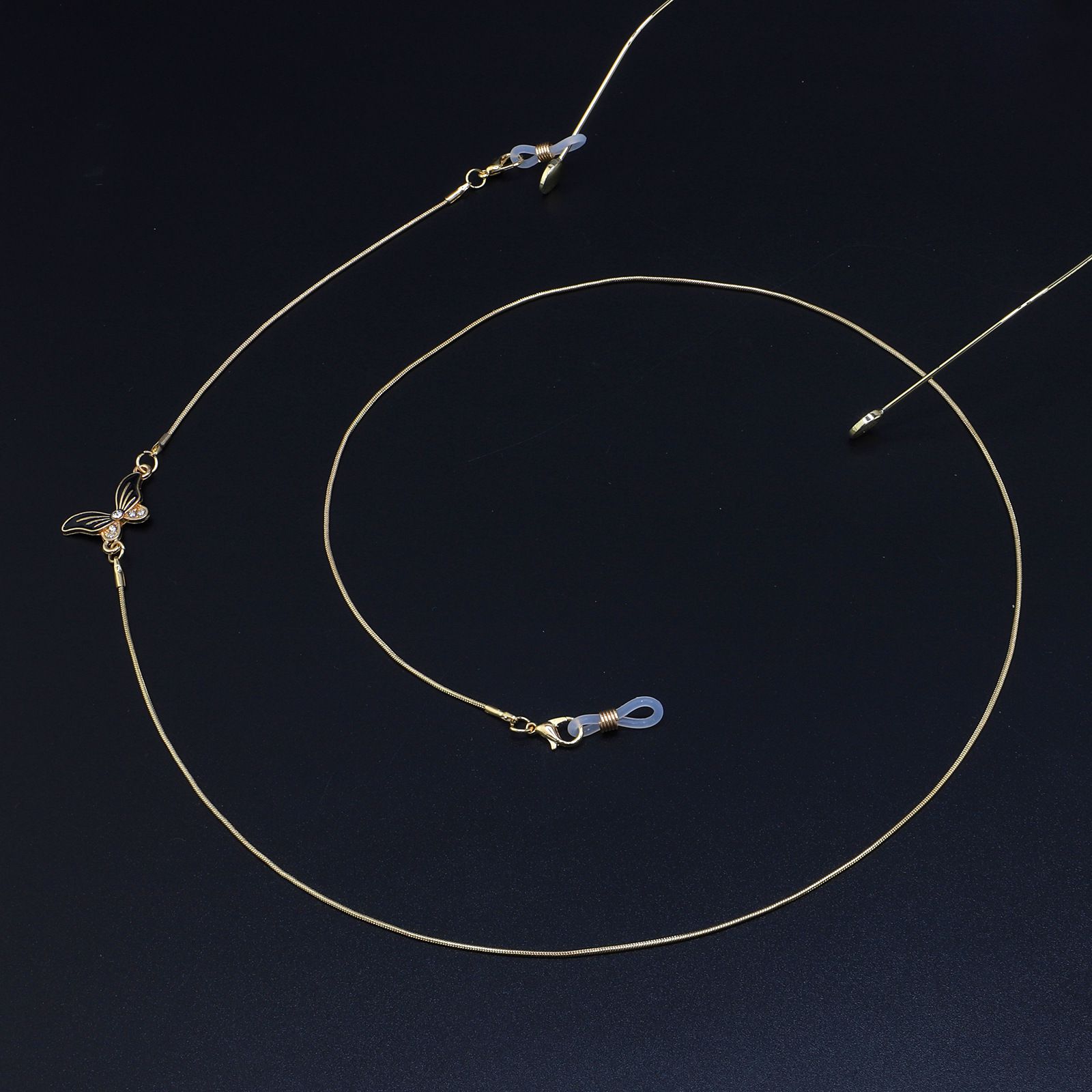 Gold-colored metal non-slip chain, with butterfly and rhinestone, for glasses and masks GL913